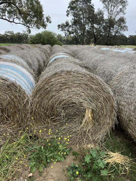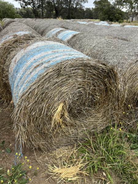 Notes: Small line of wheaten header tailings in round rolls. Stacked outside holding up well with nice bright straw in bales.