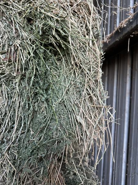 Notes: Excellent line of Lucerne Hay, bales stacked very tightly in shed up to 9 high which limited access for inspection. Bales are solid & square. Rich green colour.