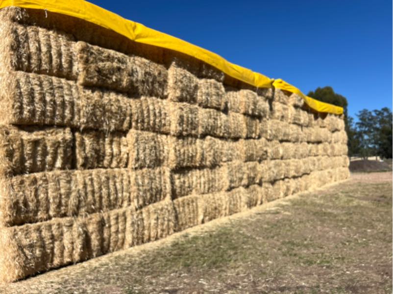 Notes: Nice small line of early barley straw. Nice and fresh with soft bright straw. Well stacked under tarps.