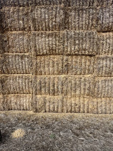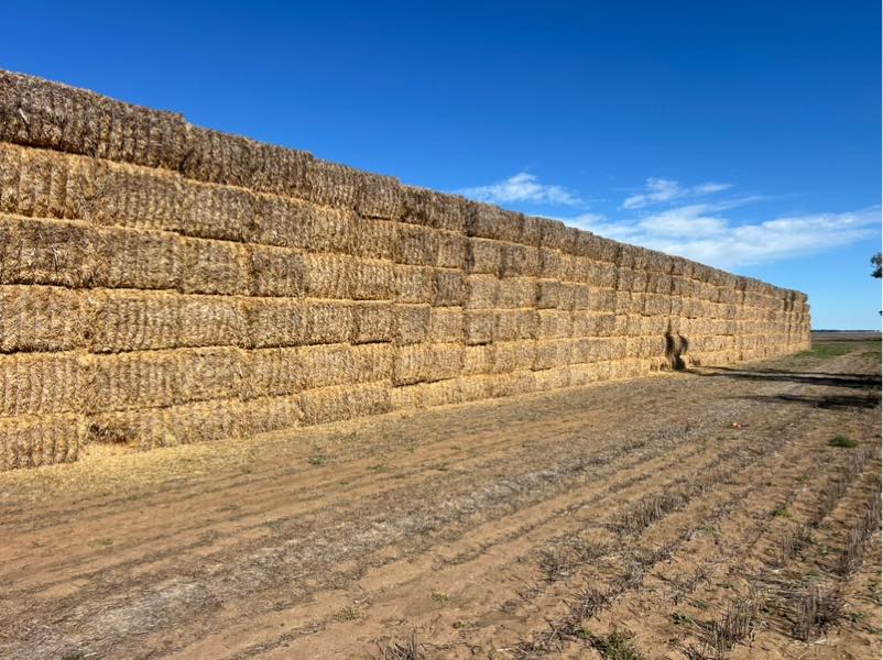 Notes: Very large line of outside stacked wheaten header tailings. Product is quite short almost presents as chopped. Good consistency of grain husks and finer material in bales. Stacks have seen considerable volumes of rain in stacks but presents really nice. Grower will remove any significantly damaged tops or bottom bales.