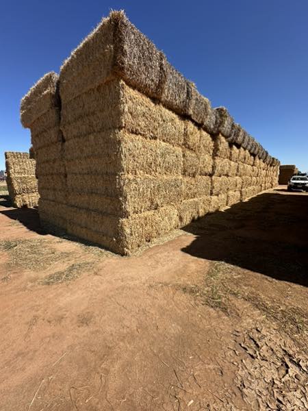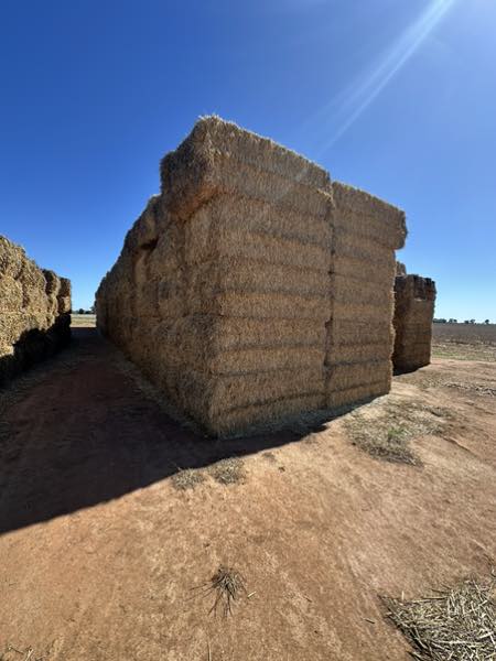 Notes: Beautiful line of 2024 season Awned wheaten hay. Baled with Krone 8 string baler to an average of 670kg+. The core sample showed a rich green colour. Soft to raspy in feel given a lower average moisture of 10.7%. Well stacked and tarped in a great location to service most east coast markets.