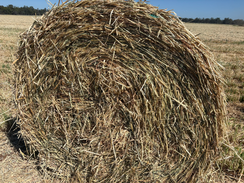 Notes: Nice line of barley hay round bales.
