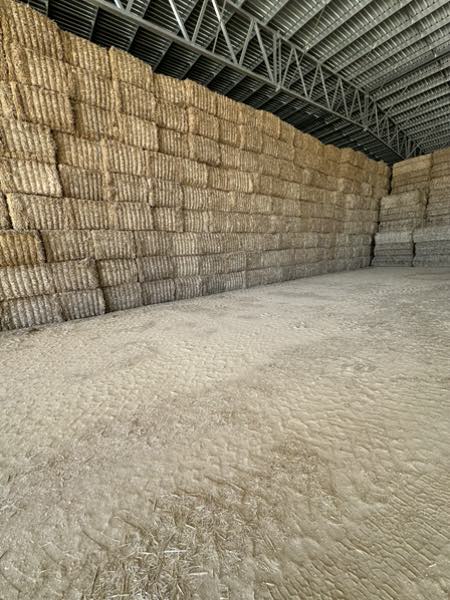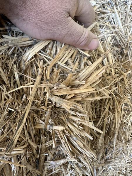 Notes: Nice large line of 2024 season chopped wheaten straw. Pretty nice colouring with the odd bale an exception. White and crisp with some spotting and some bales presenting with black on the nodes. Good chop length 100-150mm in length. Well stacked and presented in a large shed in good location.