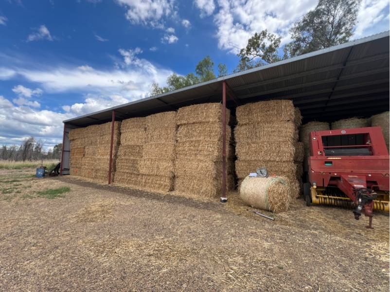Notes: Nice shedded line of irrigated Oaten hay, holding good hay aroma. Lost some colour during the drying process due to teddering. Chopped with great bales, excellent weaner hay.