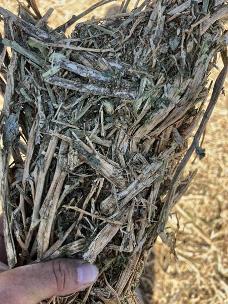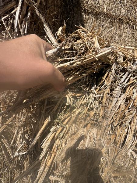 Notes: Large line of frosted canola hay, mower conditioned early in flower. Nice neat bales holding not a bad hay aroma. Holding good feed value will be good for TMR ration or rack feeding. Growers sheep are enjoying the hay.