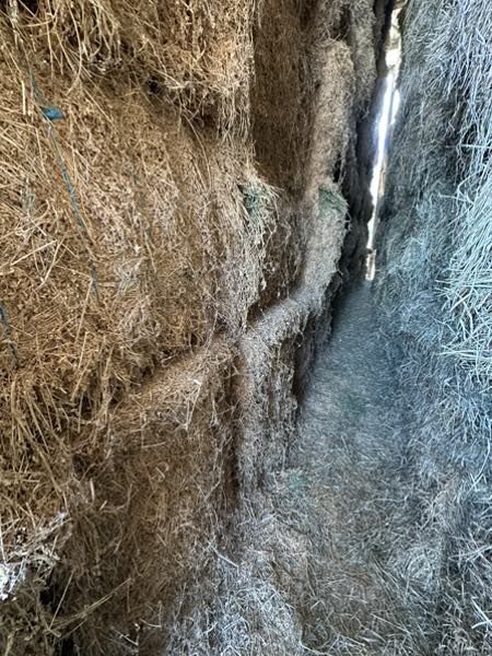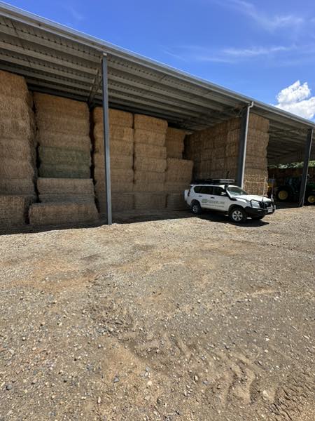 Notes: Nice line of 2023 season 3rd cut lucerne hay. Off irrigation block, baled with 6 string HD baler with bales averaging 610kg+. Nice rich green colour and excellent leaf retention. Still a bit scratchy to the feel, perhaps slightly drier at 11.3% off 40 probes observed. Well stacked and presented in an open sided shed.