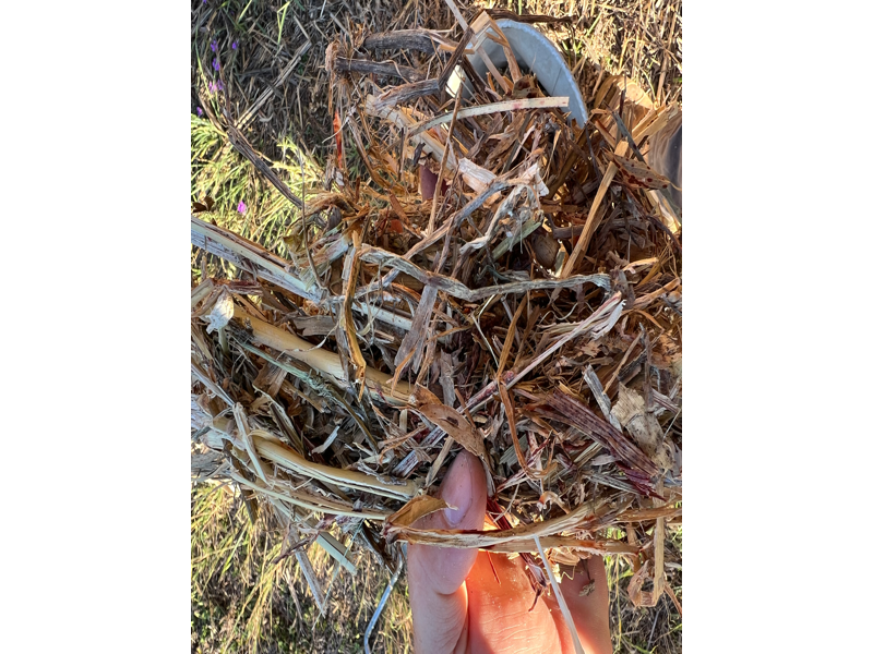 Notes: Large line of outside stacked forage sorghum hay, just kept raining and couldn’t cut until very mature. Fibre or rehab suited.