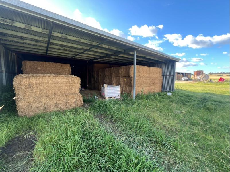 Notes: Small shedded line of lucerne, baled in the cooler months of 2024 in challenging conditions. Considering this has baled up not too bad, holds leaf and some colour.