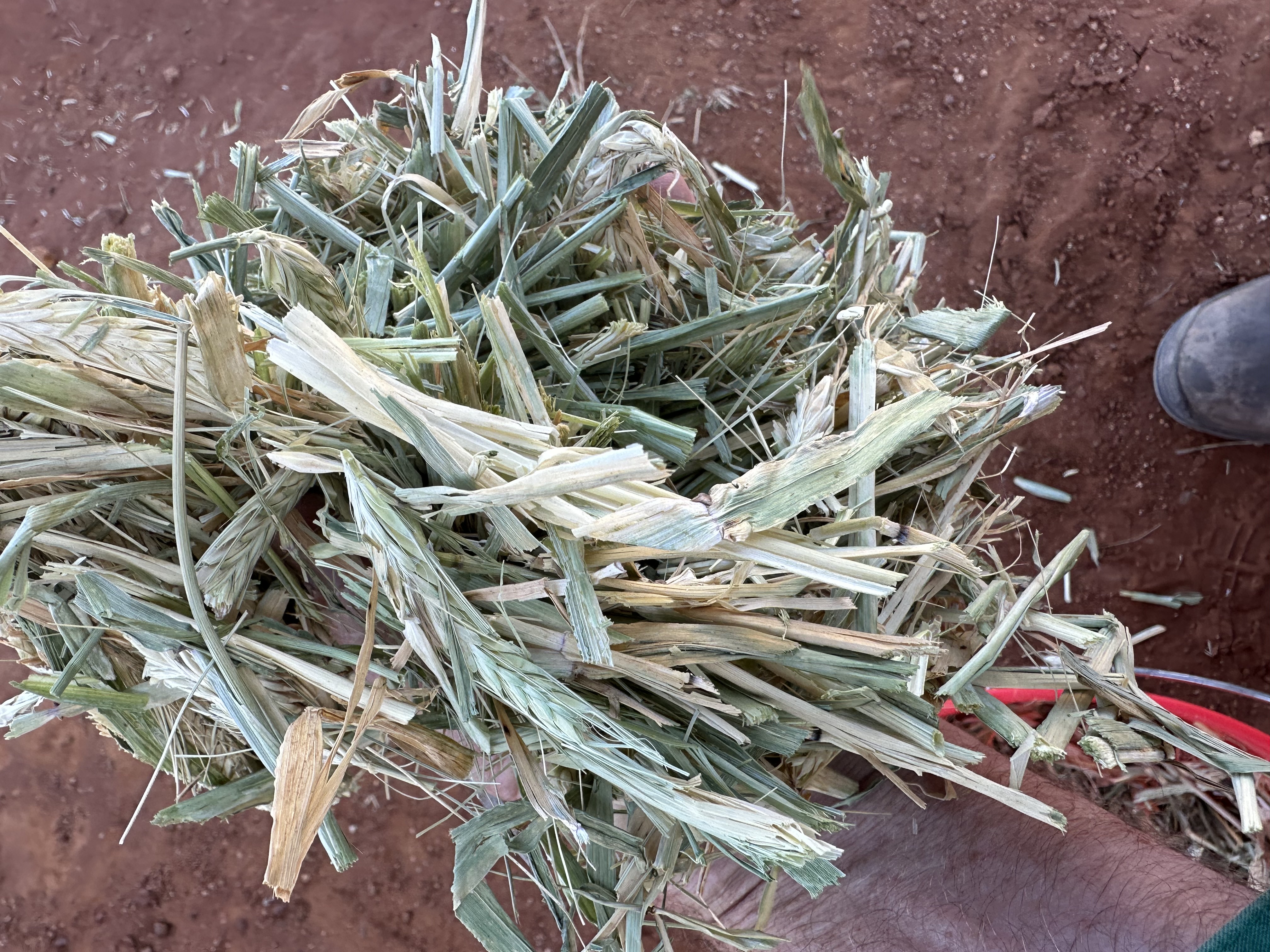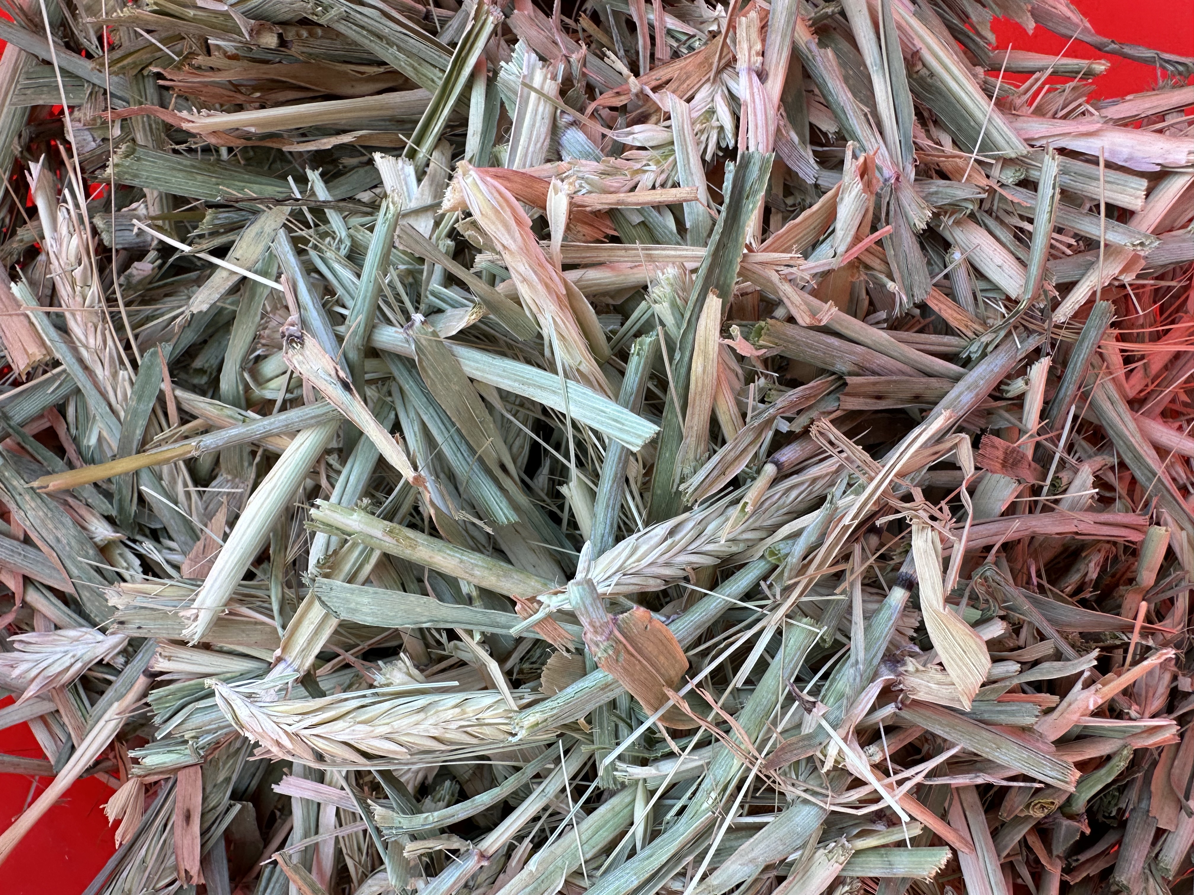 Notes: Good line of bearded barley barley stacked neatly in shed