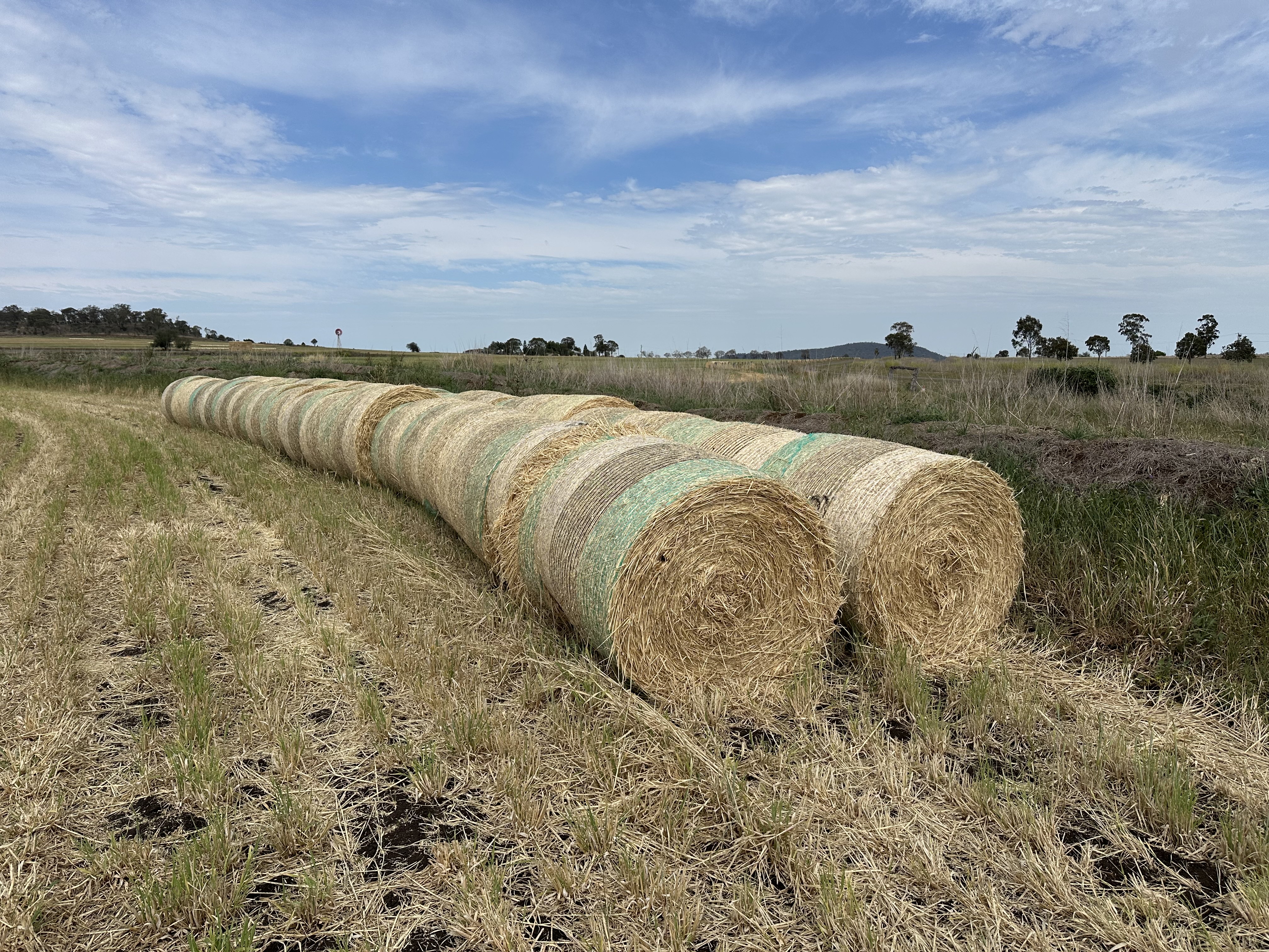 Notes: Good line of awnless barley. Stacked on edges of paddock.