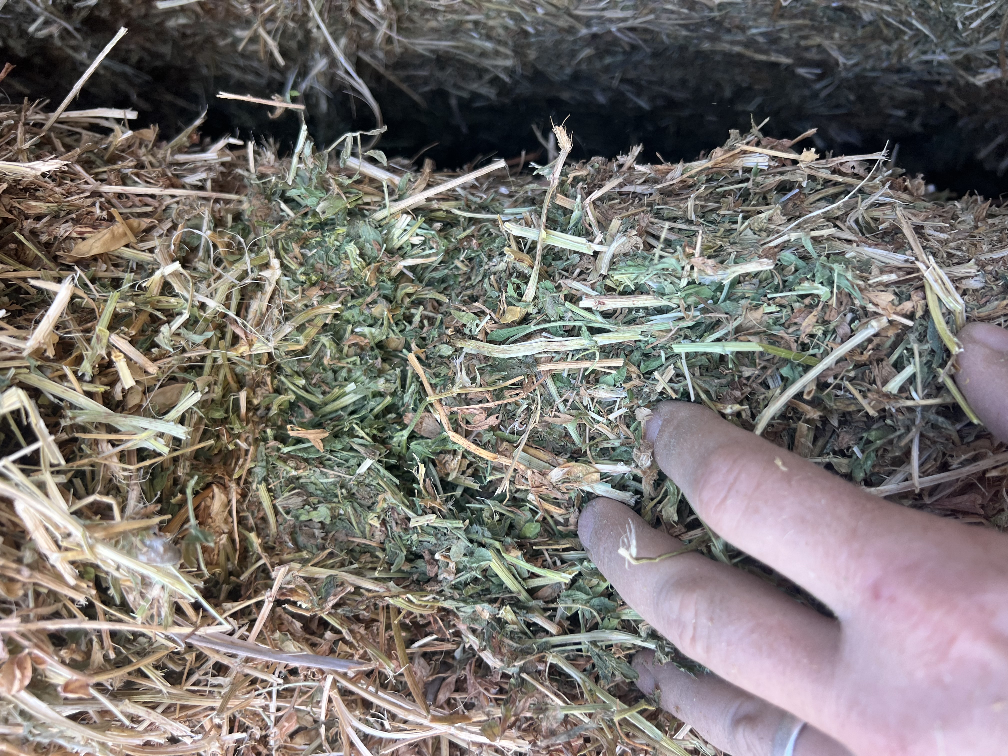 Notes: Beautiful line of outside stacked vetch hay, holds great colour and hay aroma. Lost some colour while curing no weather damage. Some pod formation.
