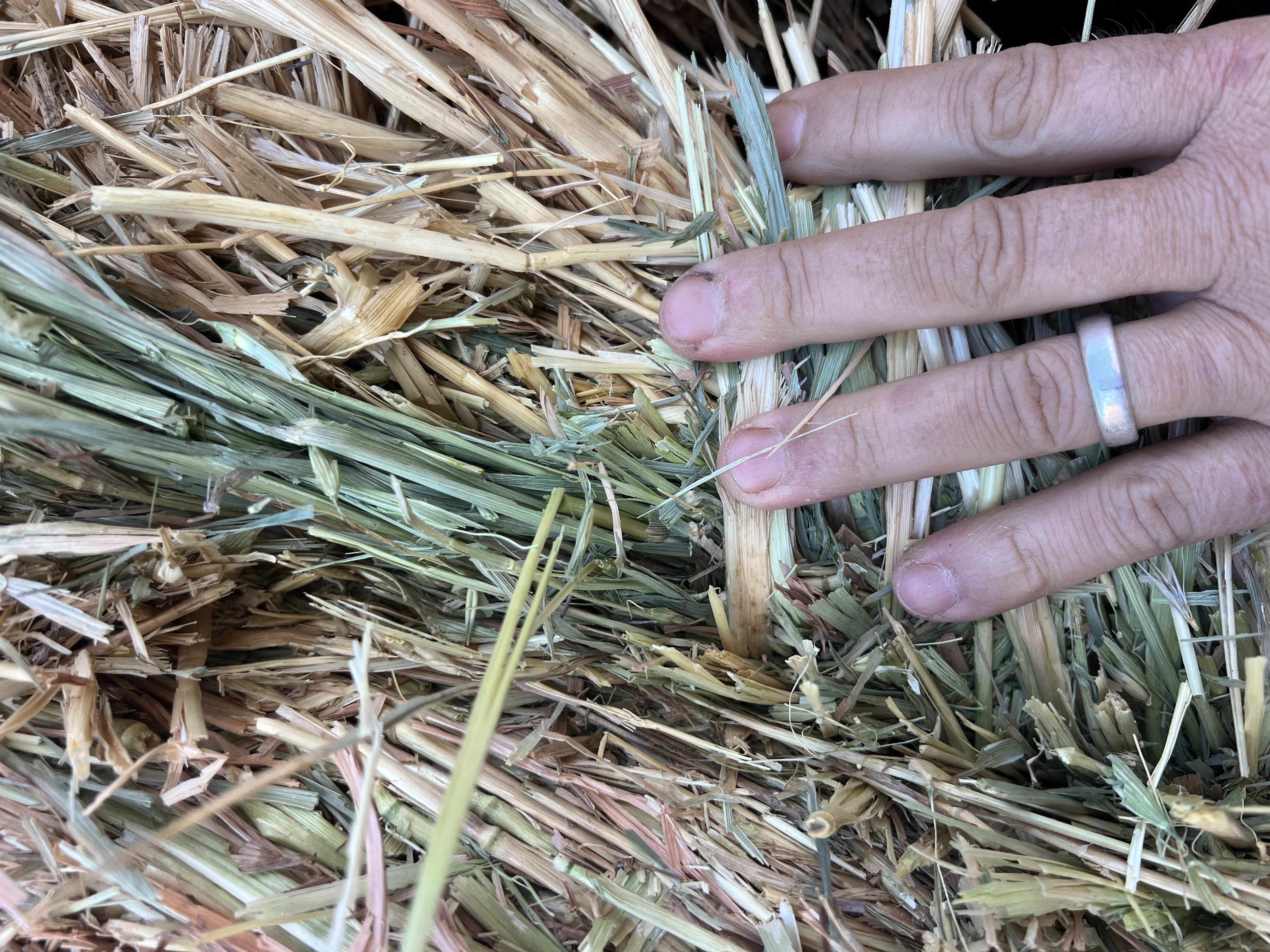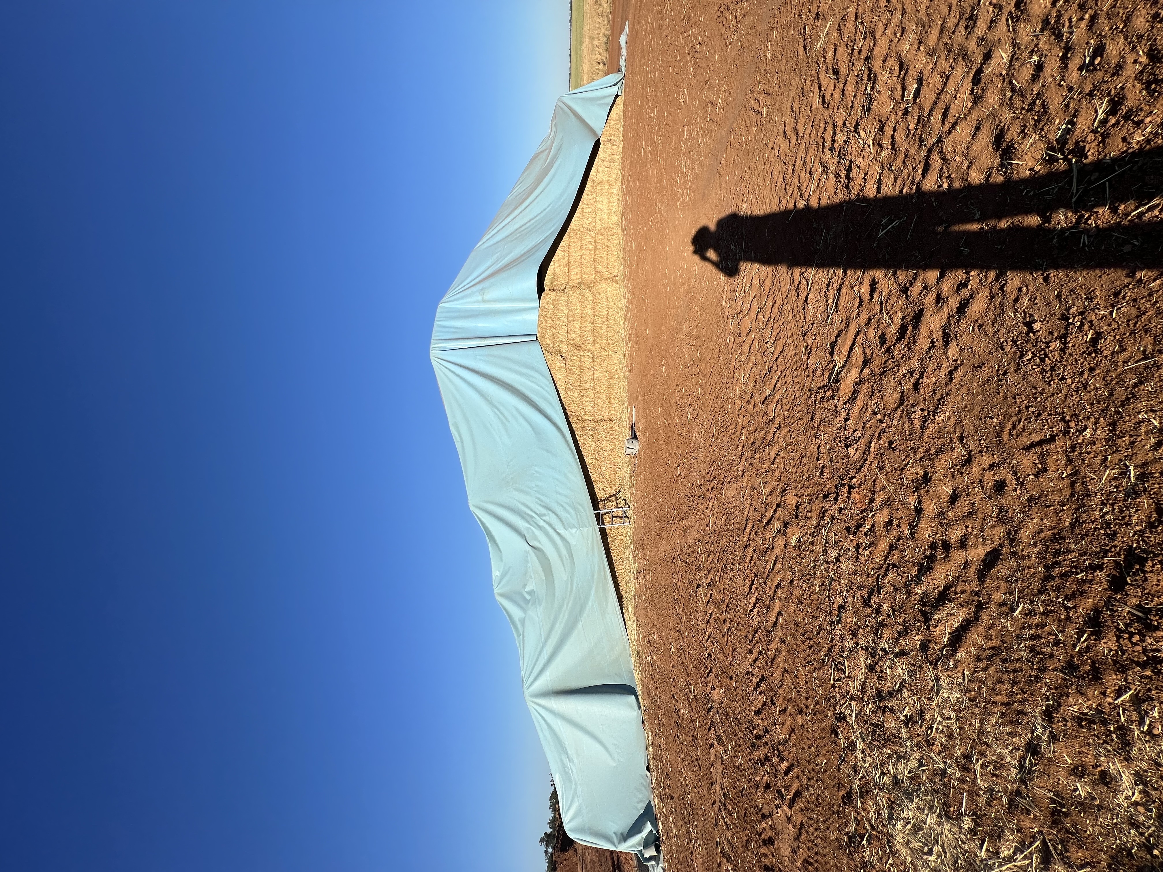 Notes: Large line of block stacked tarped Oaten Hay holding nice hay aroma with good colour. Some old crop stubble through some bales , in summary very nice hay.