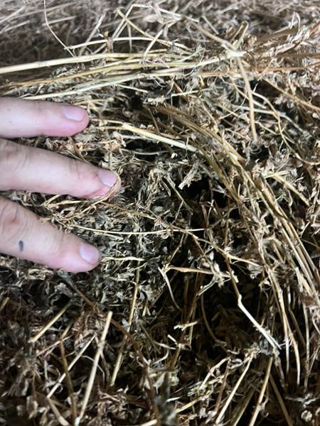 Notes: Small line of utility rounds of lucerne hay, bales hold plenty of leaf. I expect this hay will test ok and stock will consume. Is more of tobacco green colour.