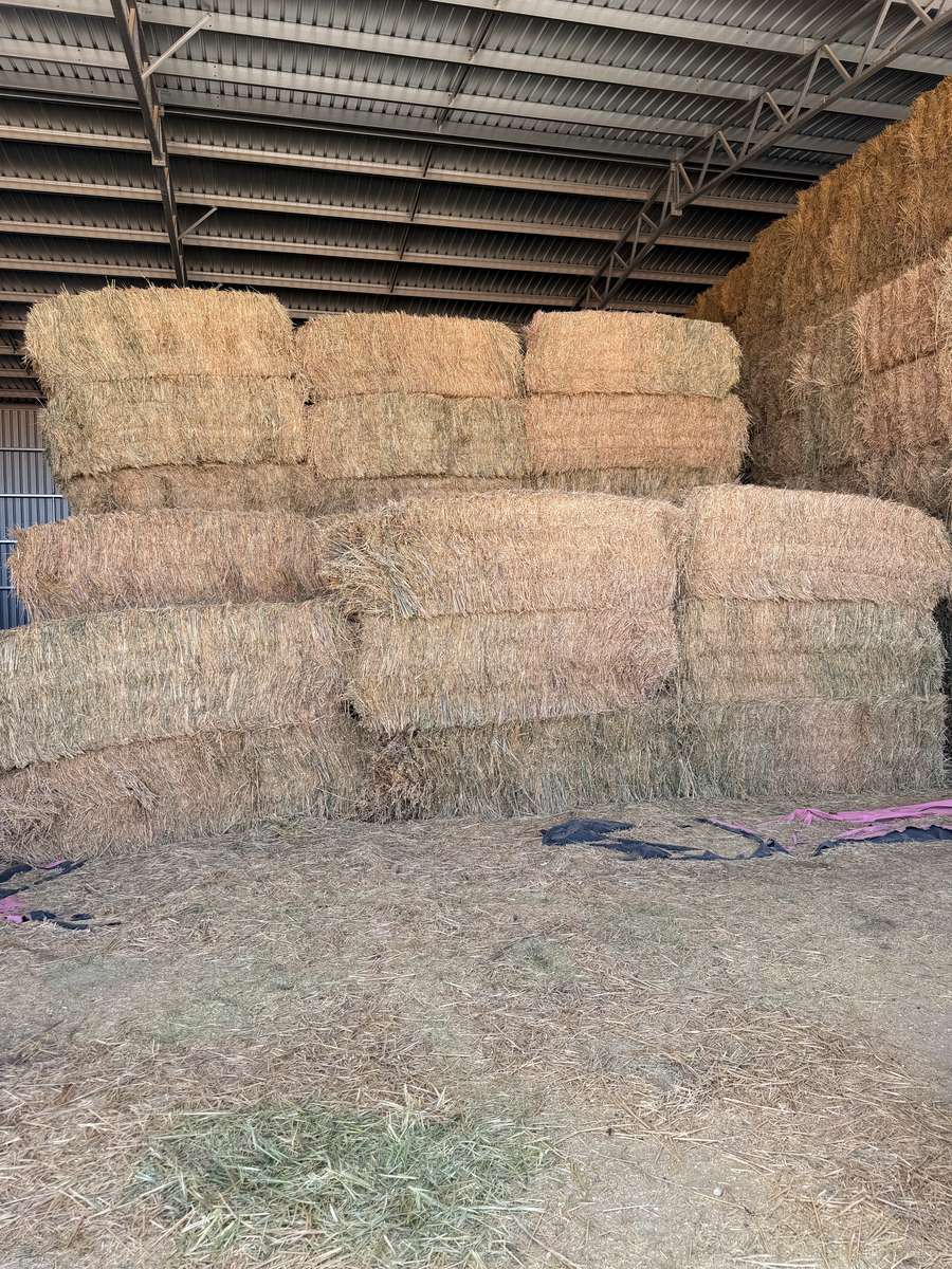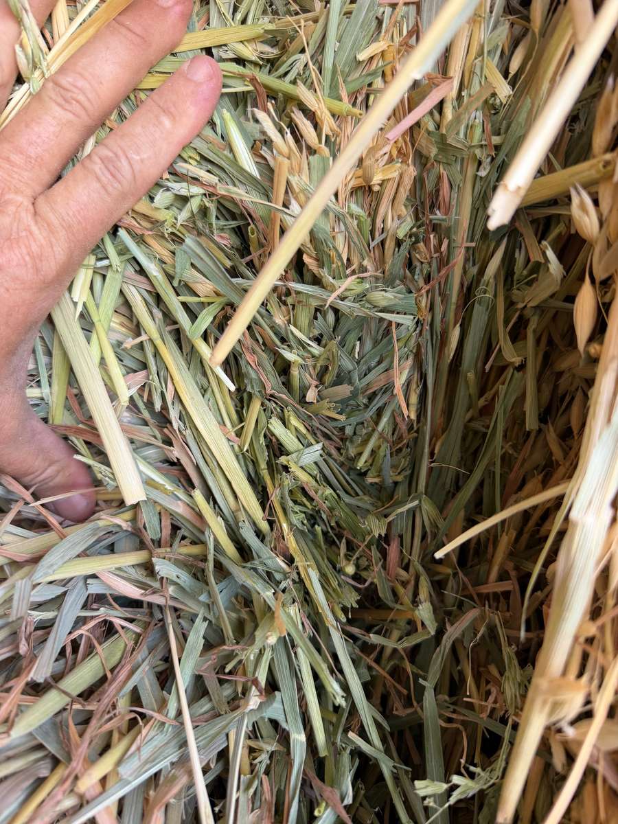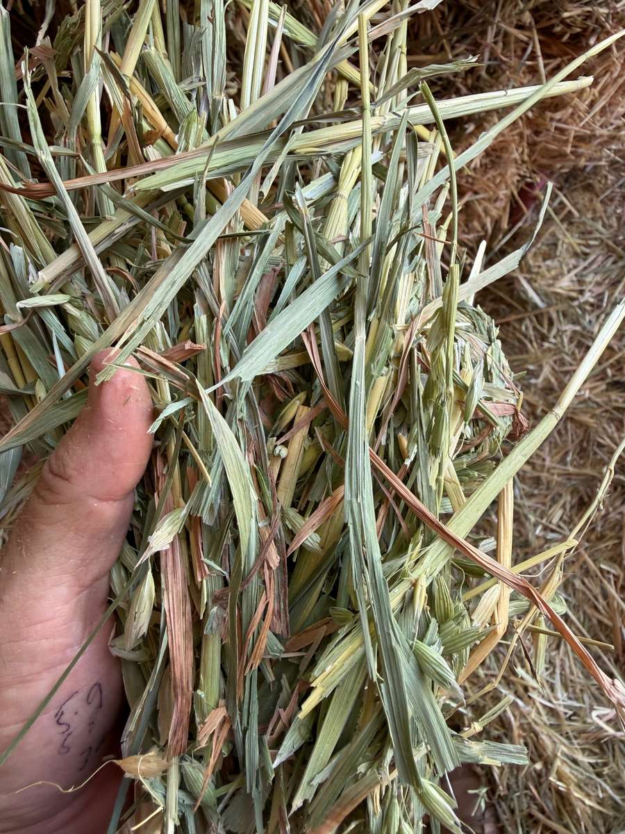 Beautiful green Oaten hay, sweet aroma and some of the nicest cereal hay seen this week. Bales aren’t very neat with some broken strings.