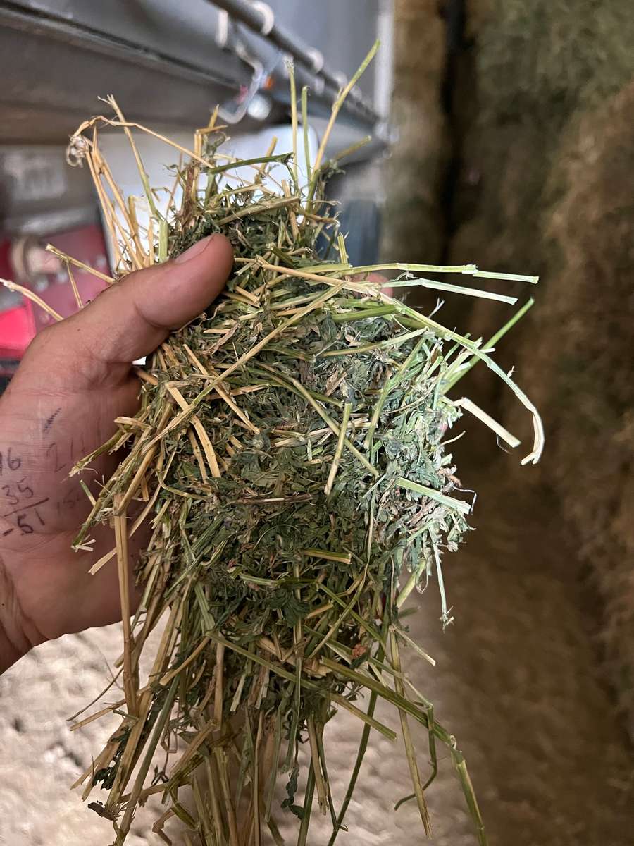 Neat small batch of lucerne, holds good colour and aroma on core samples. Bales present slightly lacking in colour caused by cooler dewy nights. Nice aroma.