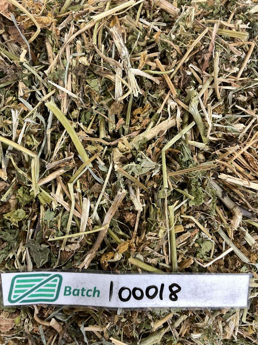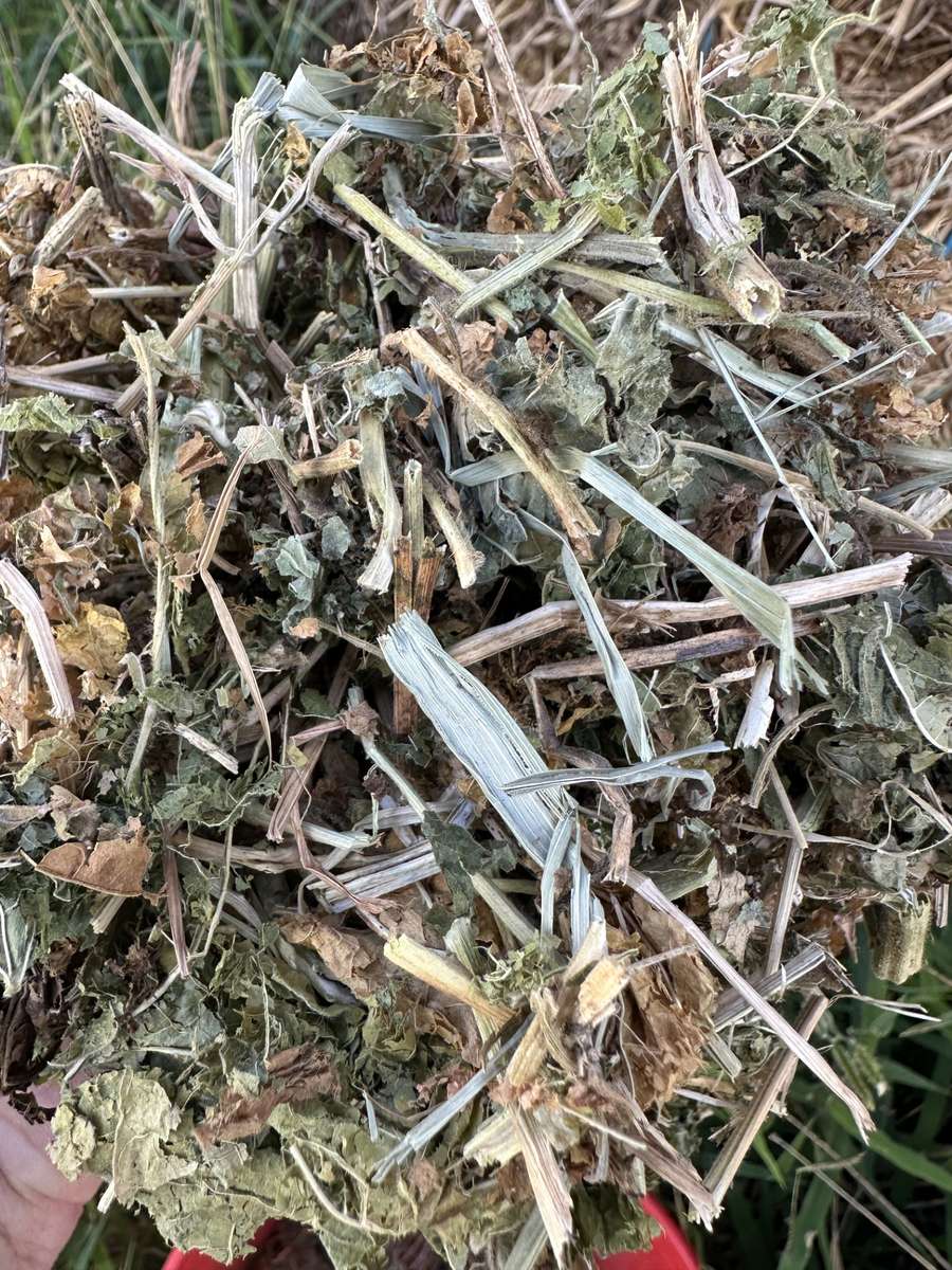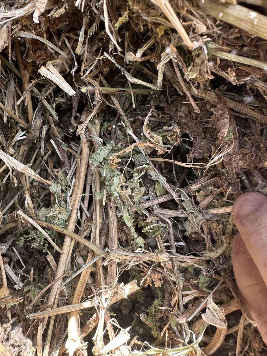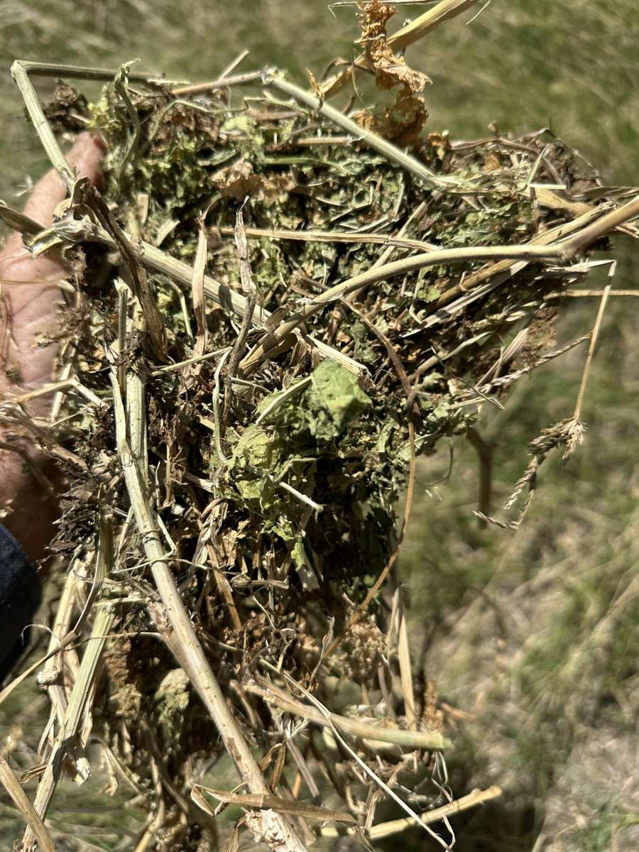 Stacked on edge of paddock under tarp. Good leaf and integrity.
