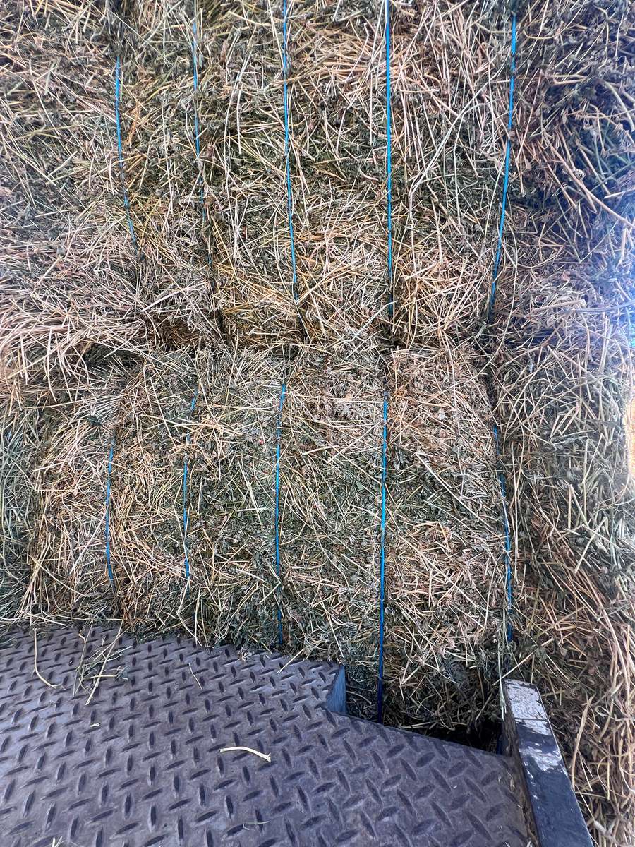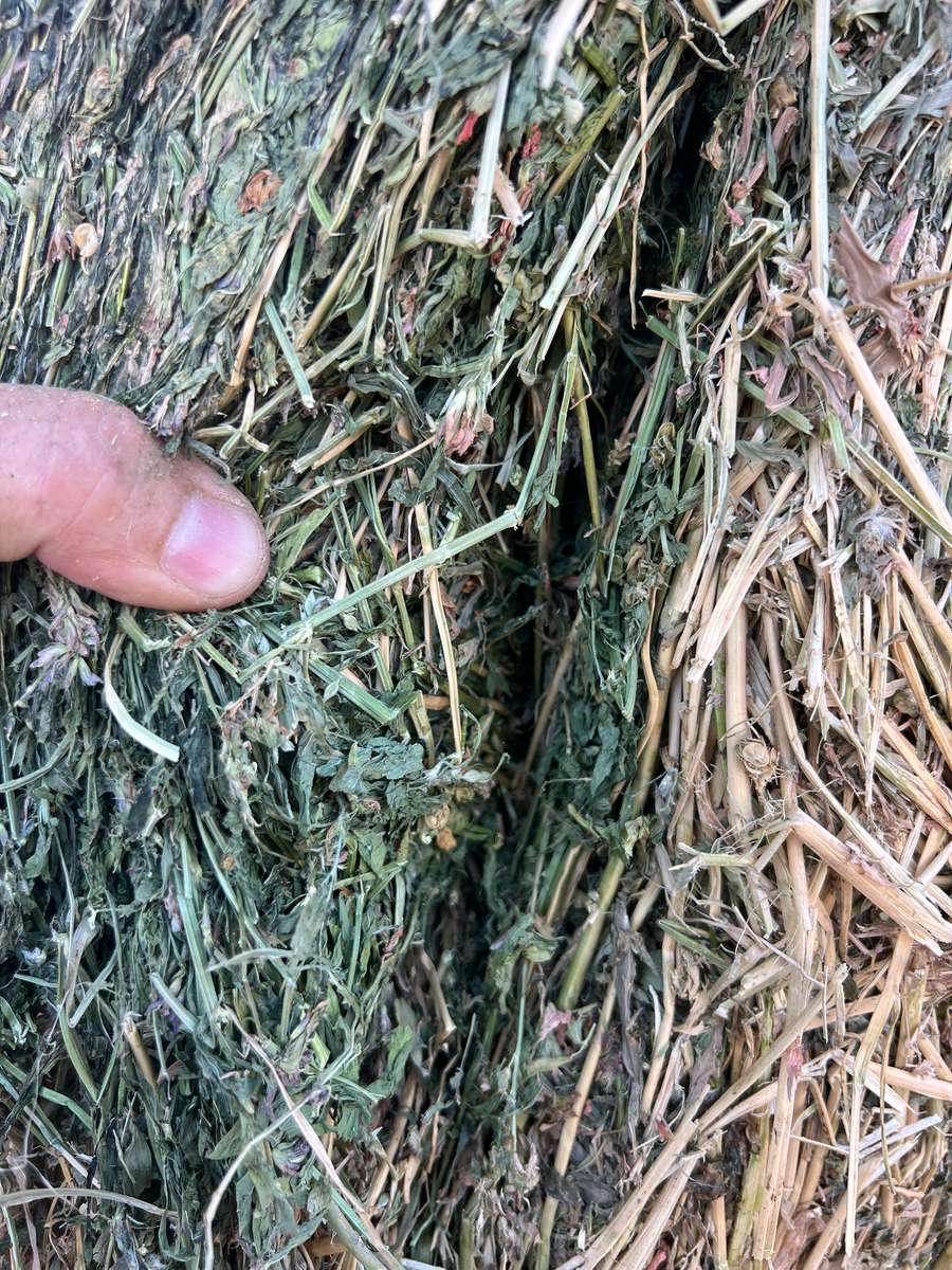 Bales present excellent, tips of windrows slightly bleached from dewy nights.