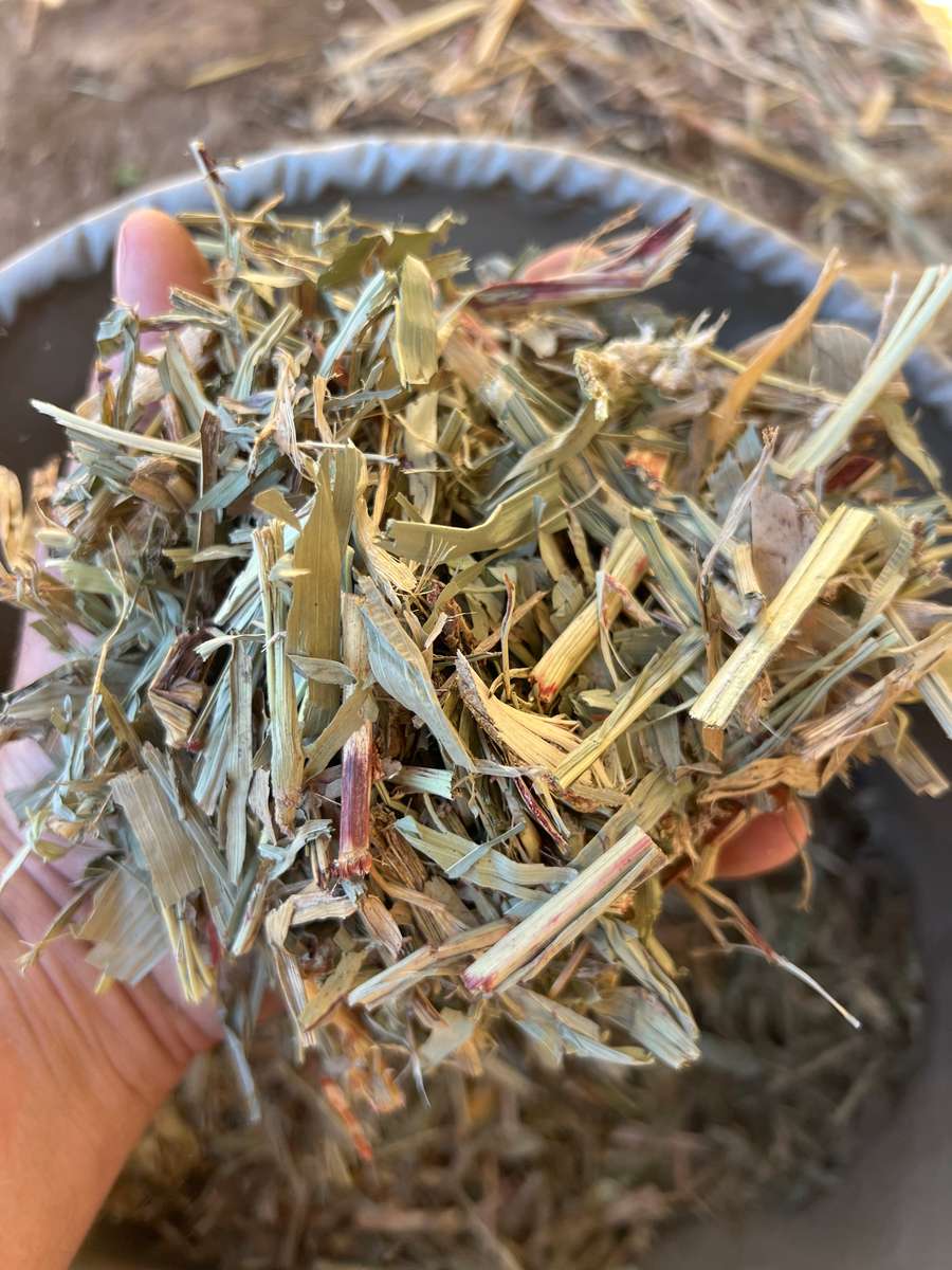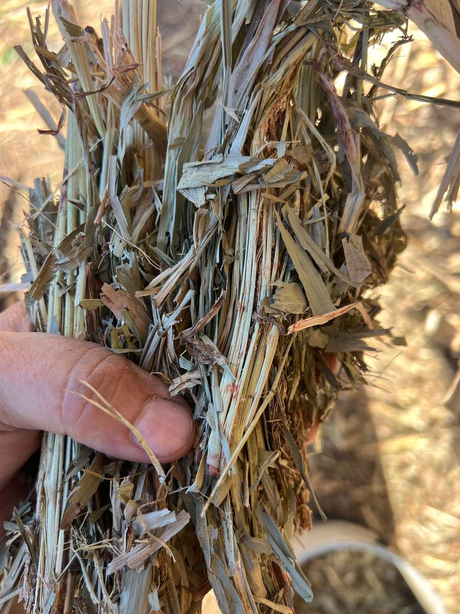 Nice line of shedded forage sorghum, colour and aroma with good leaf retention.