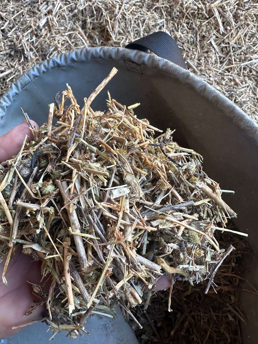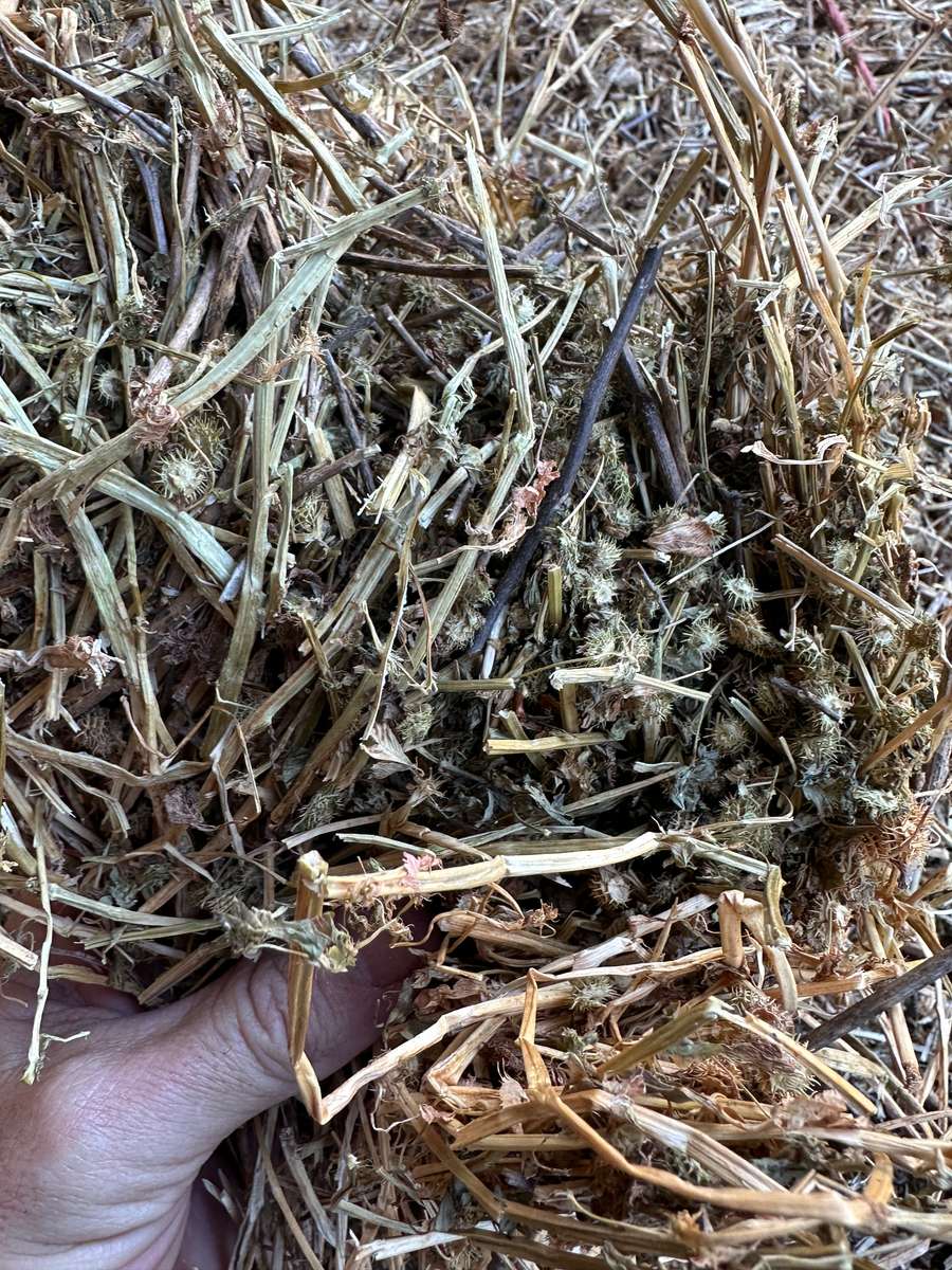 Bales are dry & coarse. The mix ratio is an estimate as the bales vary quite a bit. There is plenty of clover seed in the bales. Bales are shedded but have stock damage around the base.