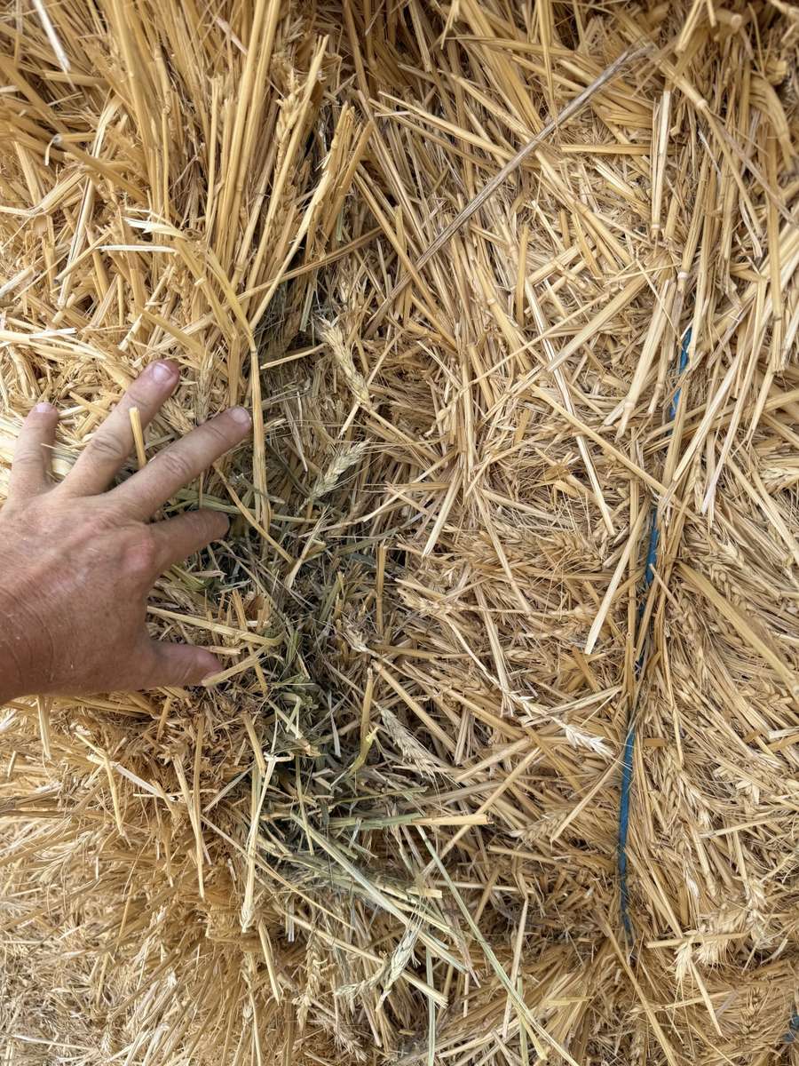 Beautiful line of Awned wheaten hay, holds exceptionally good colour and hay aroma. Baling still in progress at inspection, will be paddock stacked and hay capped.
