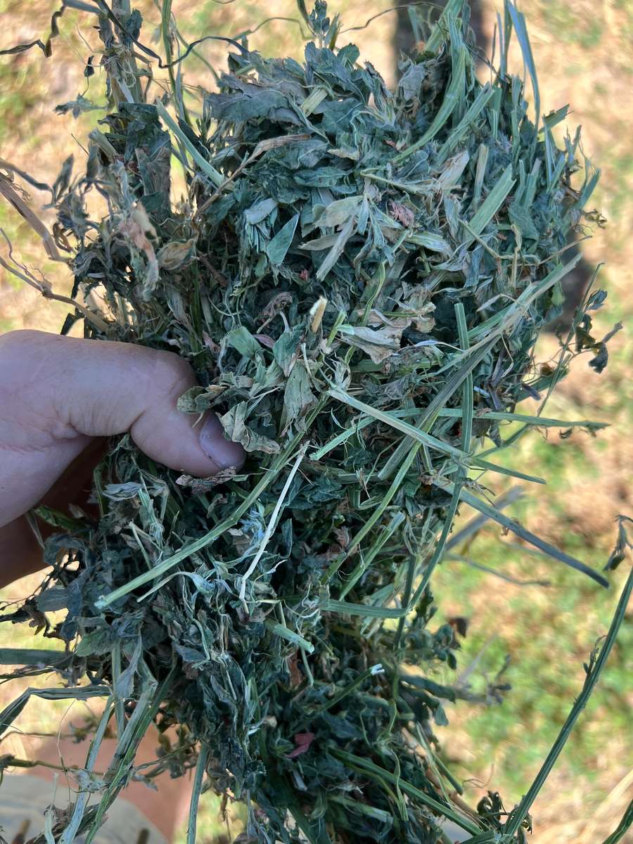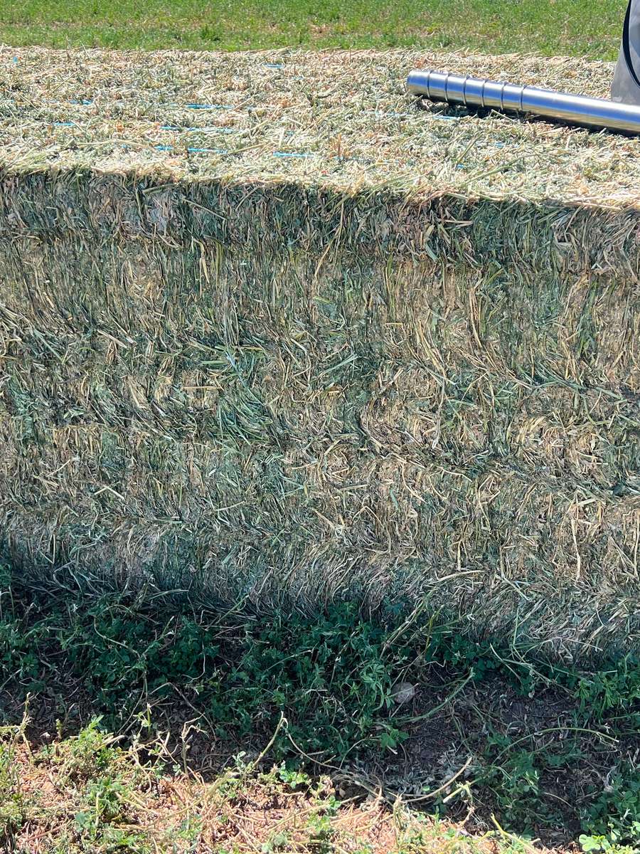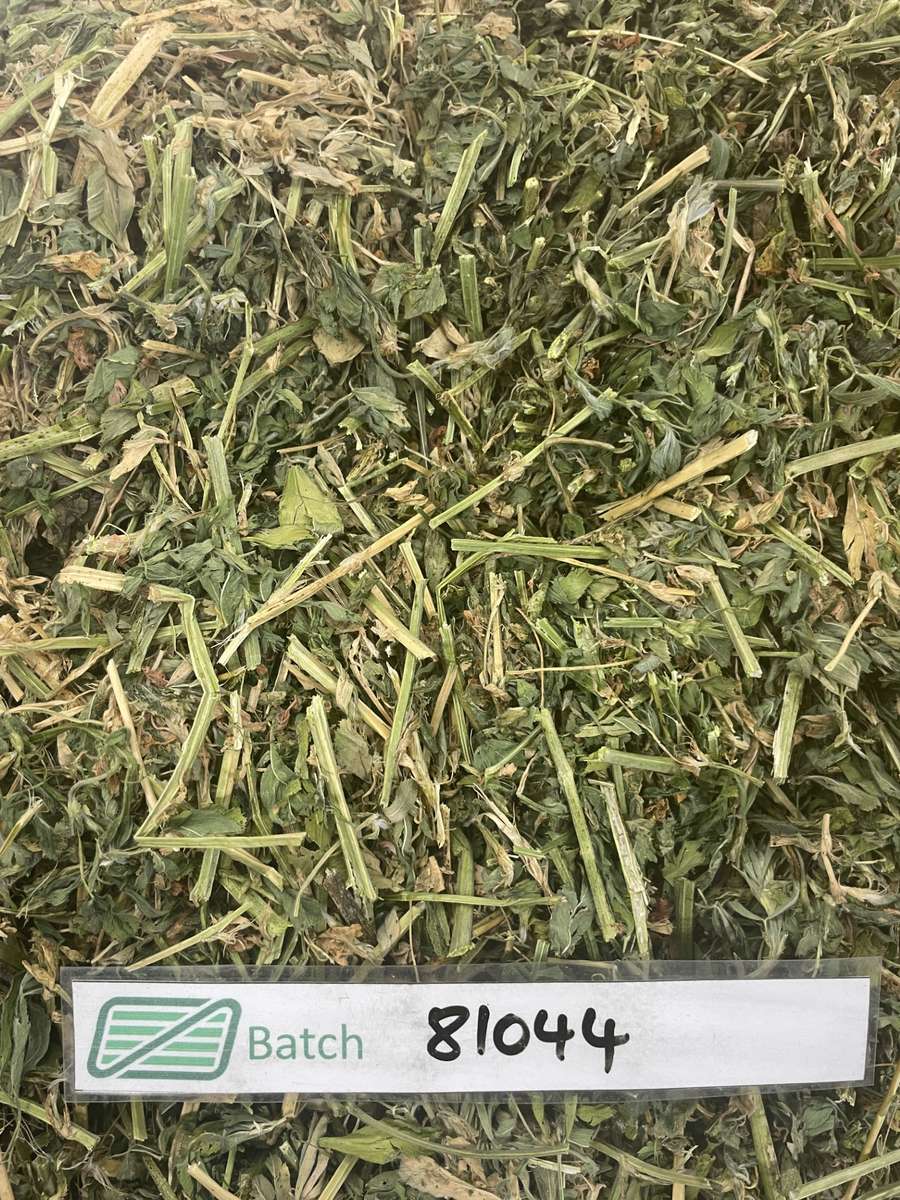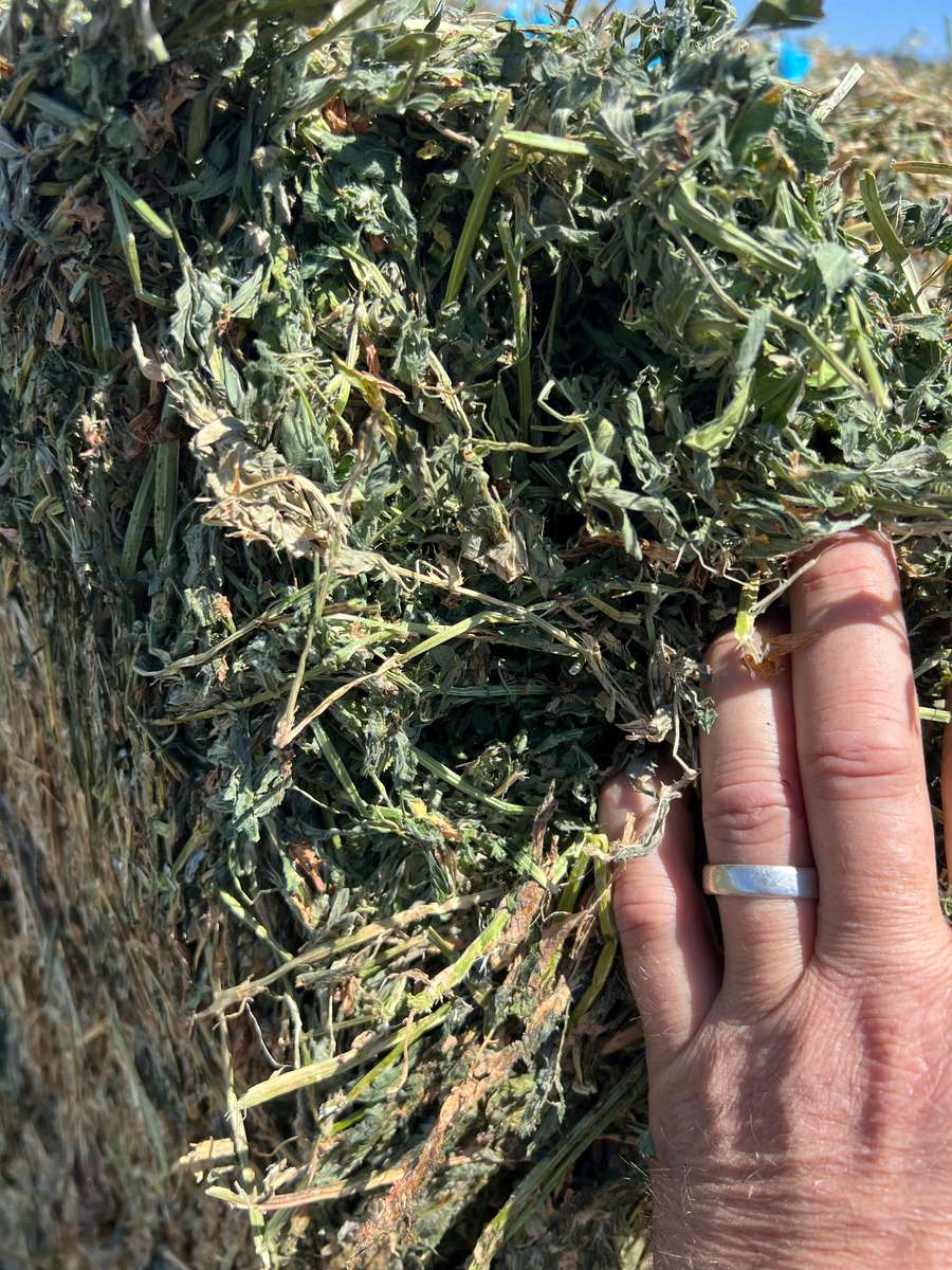 Nice line of prime lucerne, first cut for the spring hay season, some spotting on stems from winter growth. Baling still in progress at inspection coming together beautifully.