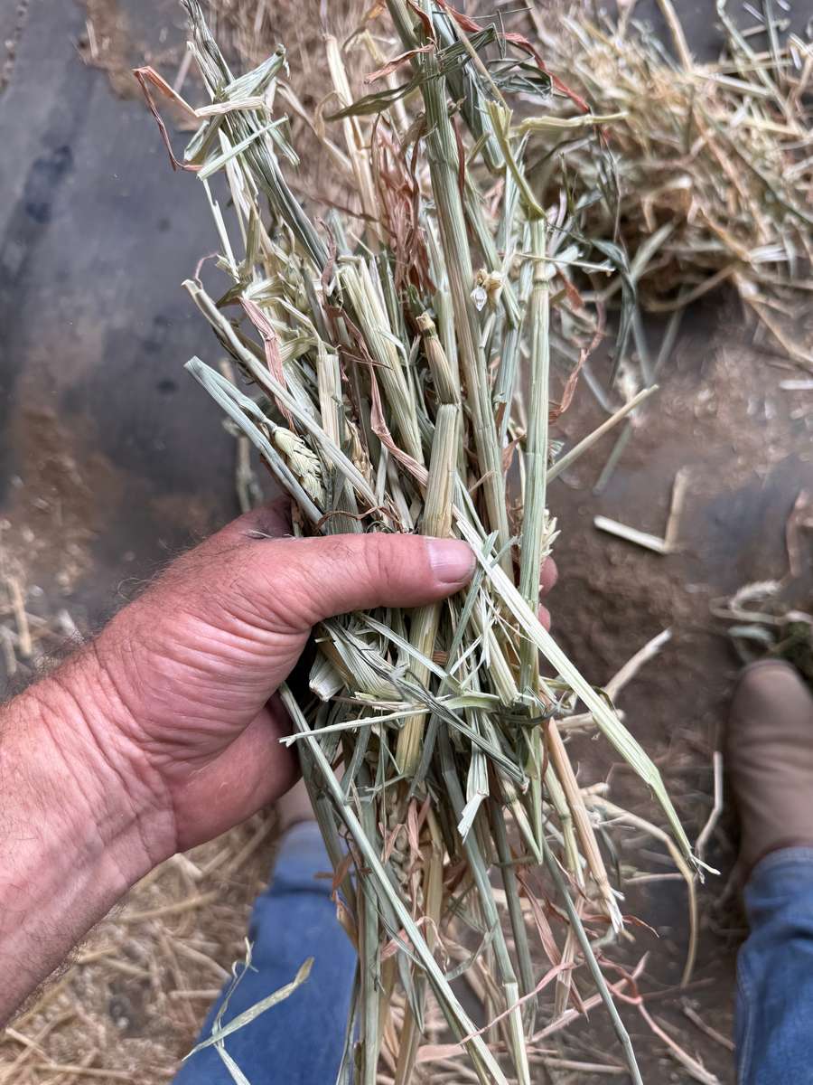 Really nice line of wheaten hay, well shedded and nice bale weight