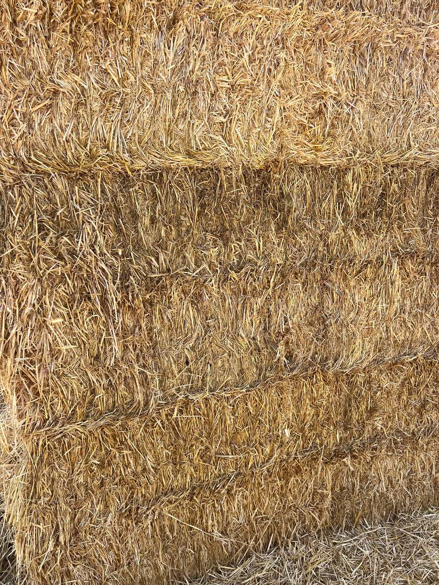 Barley Header tailings paddock stacked six high, unfortunately hit with rain prior to stacking resulting in wet tops on all bales. Moisture crept down 6 inches. Looking for prompt home.