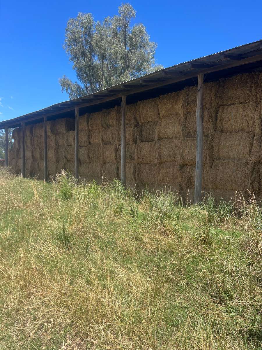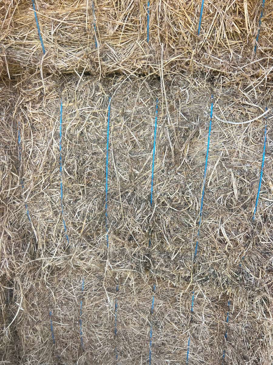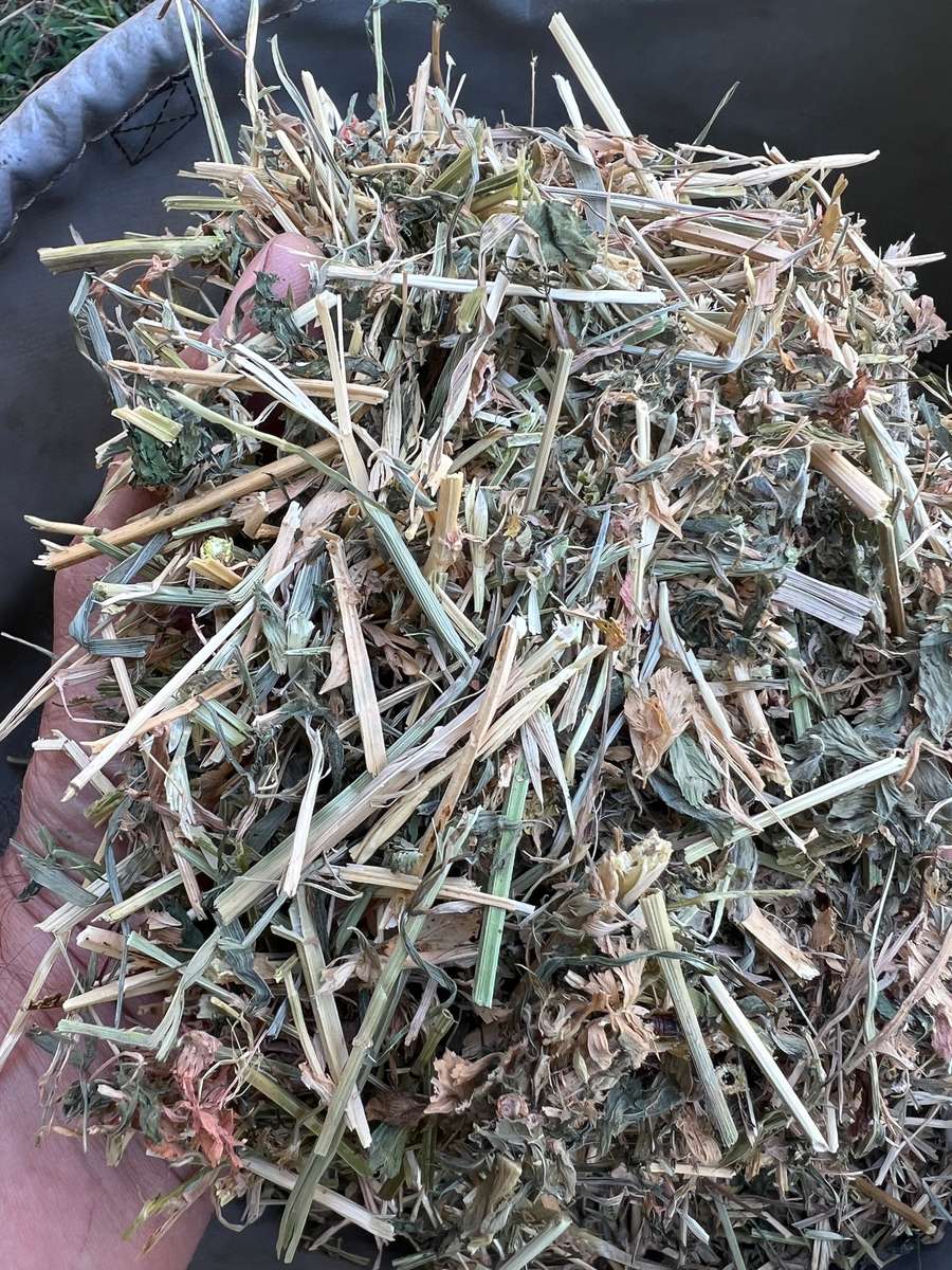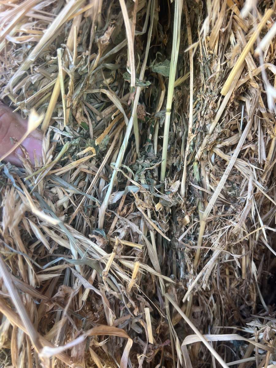 Line of grassy first cut lucerne contains varied volumes of Prairie grasses.