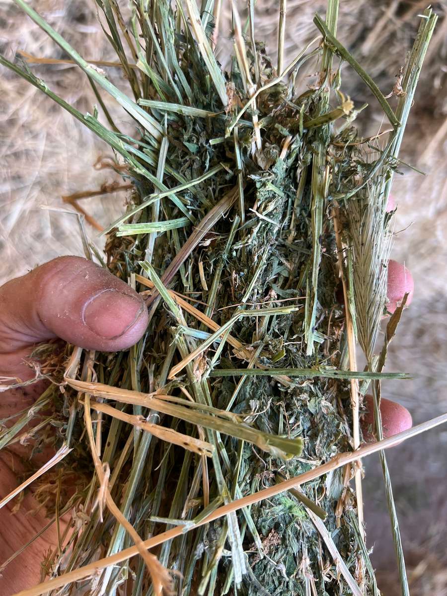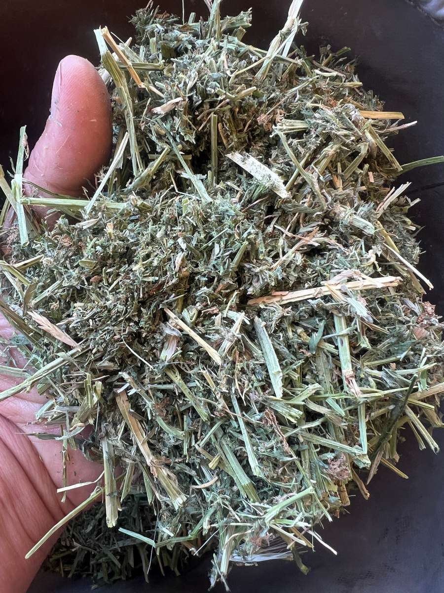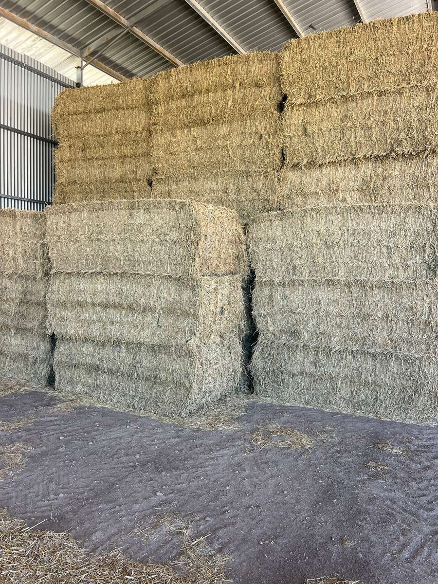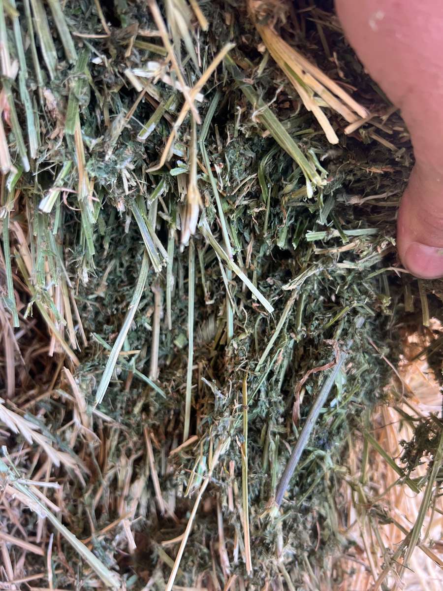 1 st Cut lucerne holds great colour and good hay aroma, Some thistle and barley grass noticed only 1-5%. Leaf is in bales but baled a touch dry.