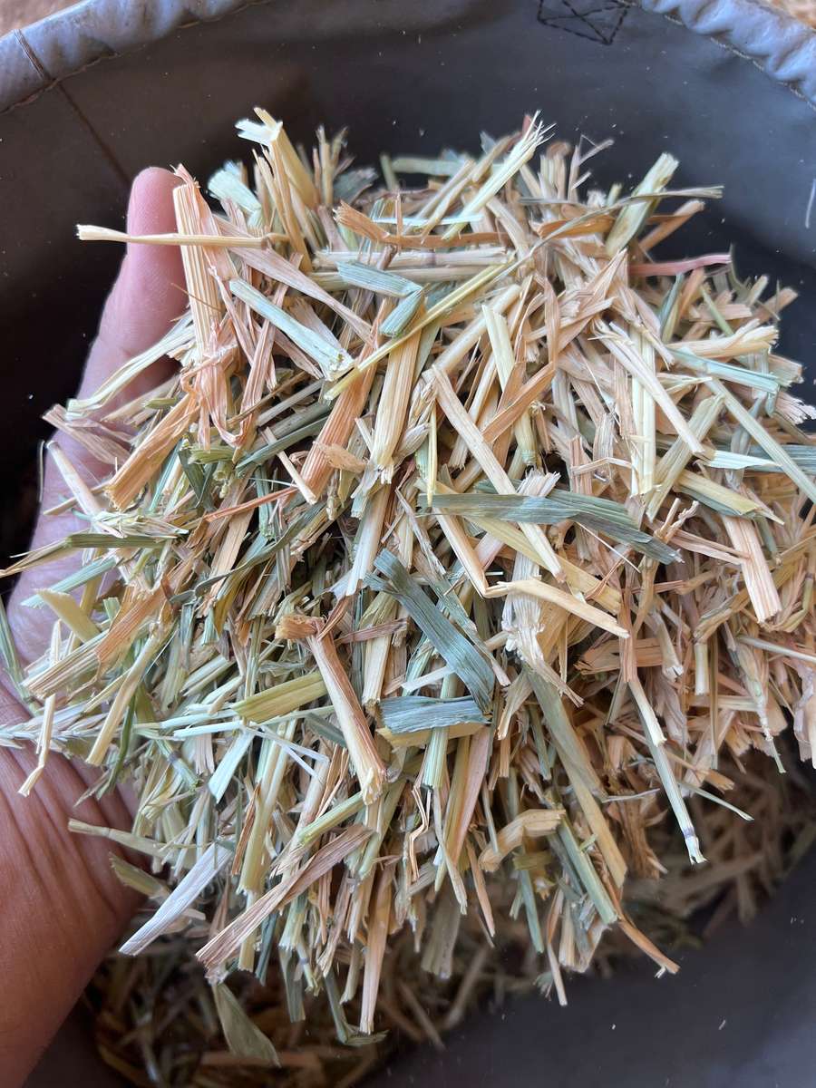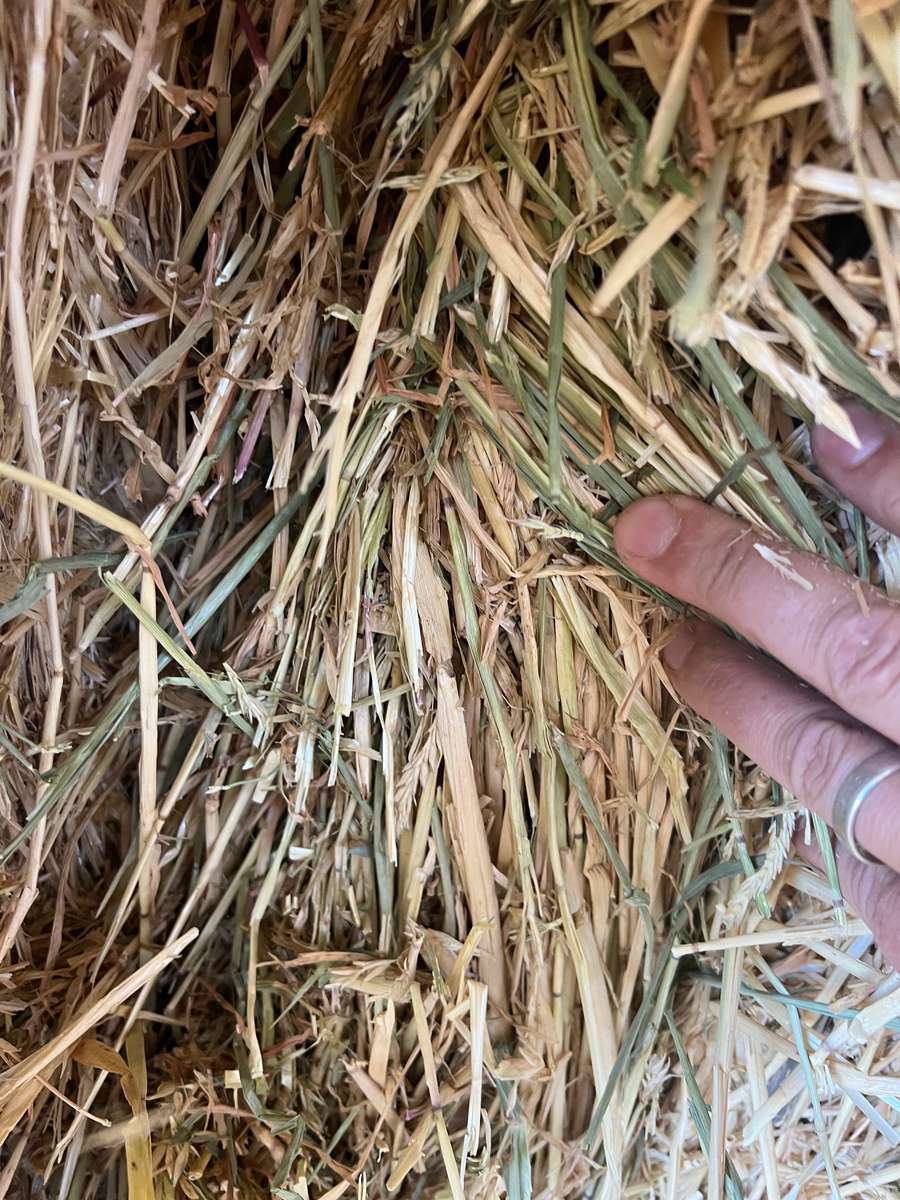 Small line of shedded Barley hay windrow had 4 mm of rain just after cutting, baled well just lost some colour due to the extra raking.