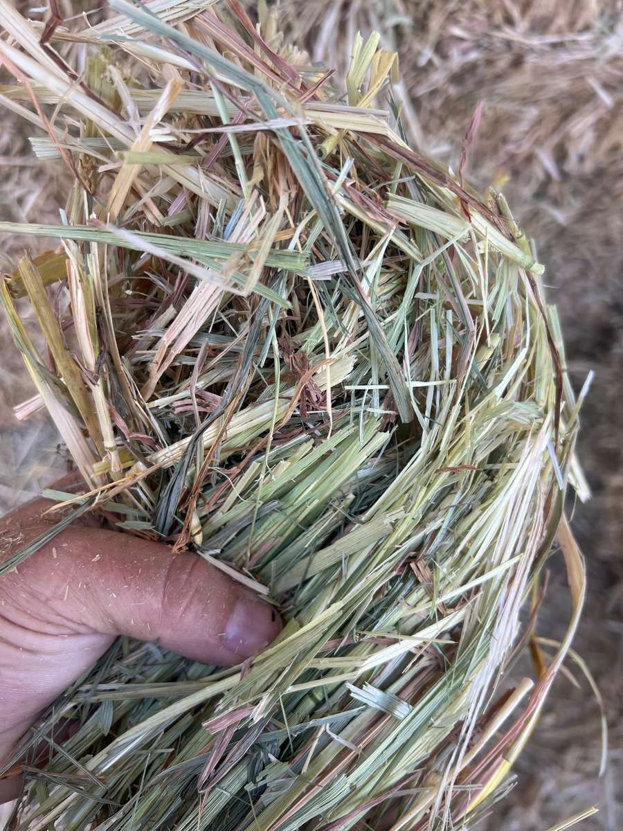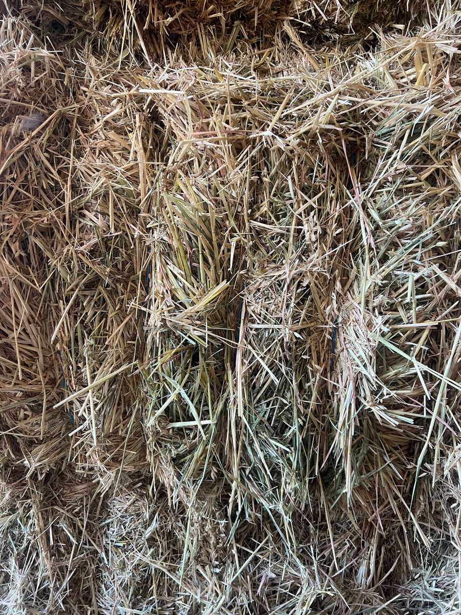 Solid line of shedded Oaten hay, baled up better than experienced considering curing conditions. Holds colour and good hay aroma.