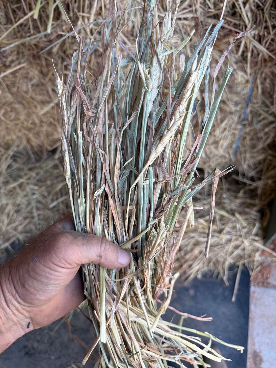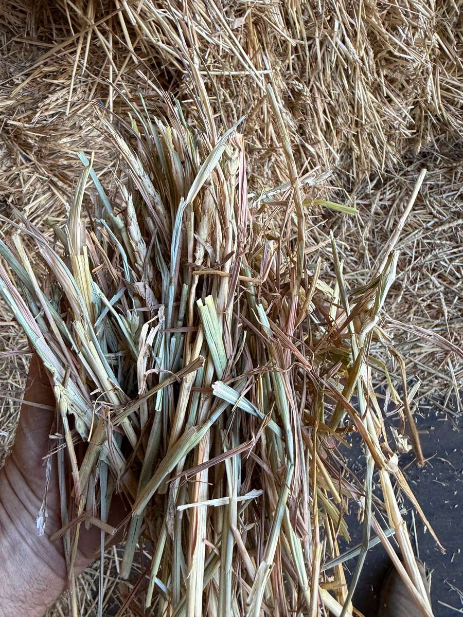 Nice line of Wheaten Hay just had some rain in the windrow