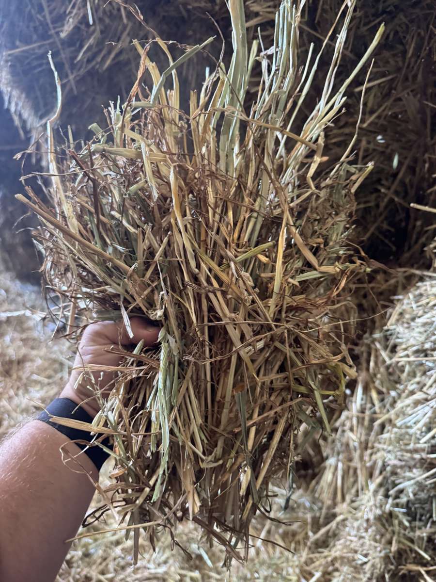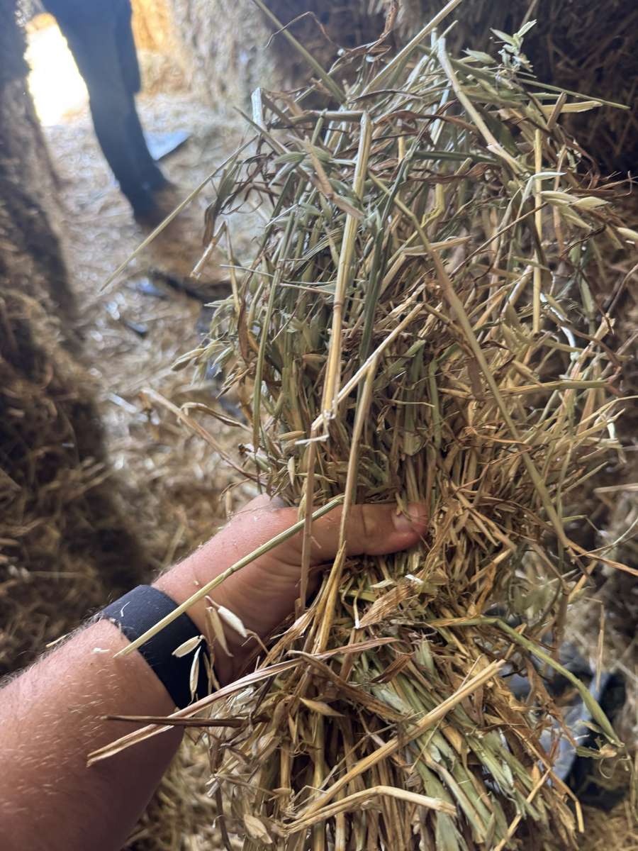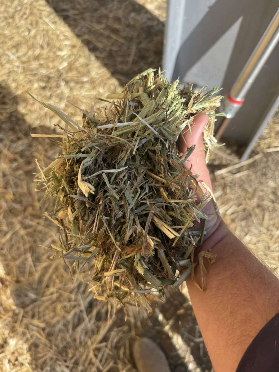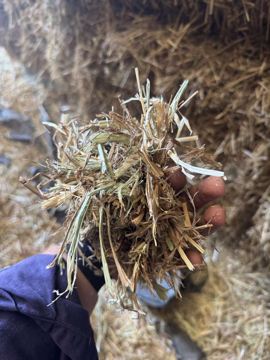 Nice line of Oaten Hay this product is chopped very well shattered presents with good colour and a good smell. You still can see it has had rain on it but it’s handled it well.