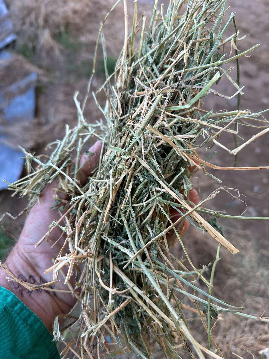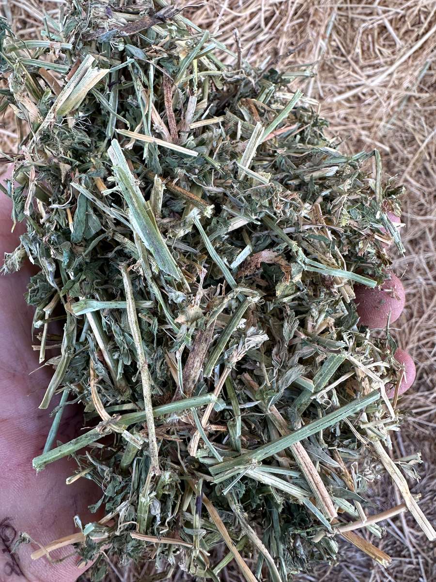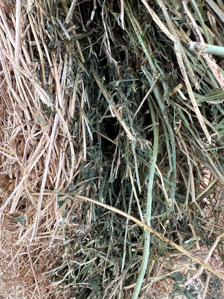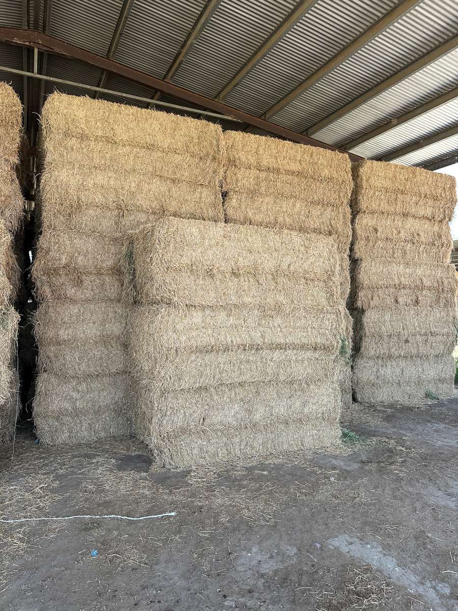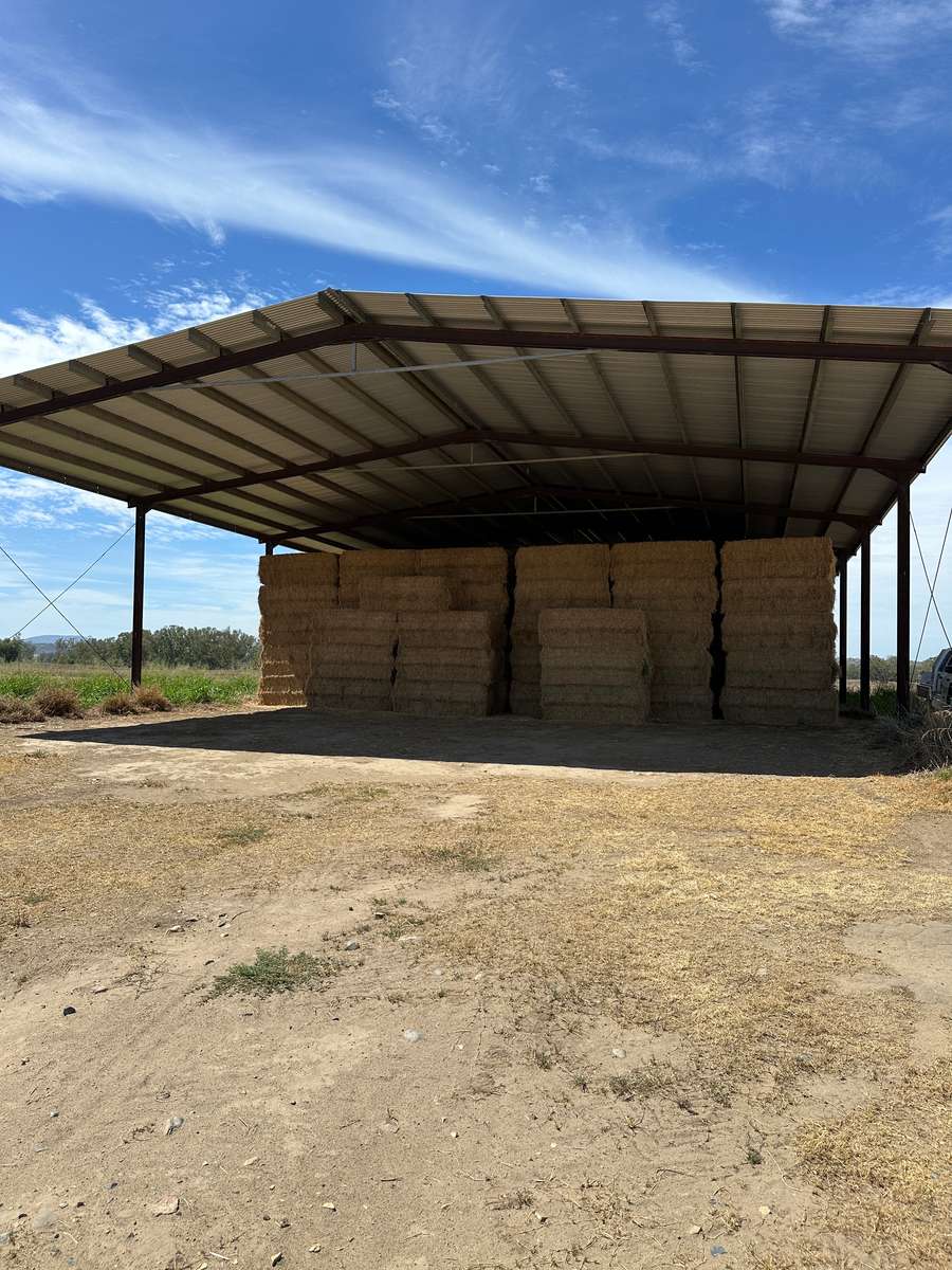 Very nice line of lucerne stored nicely in shed. High density bales