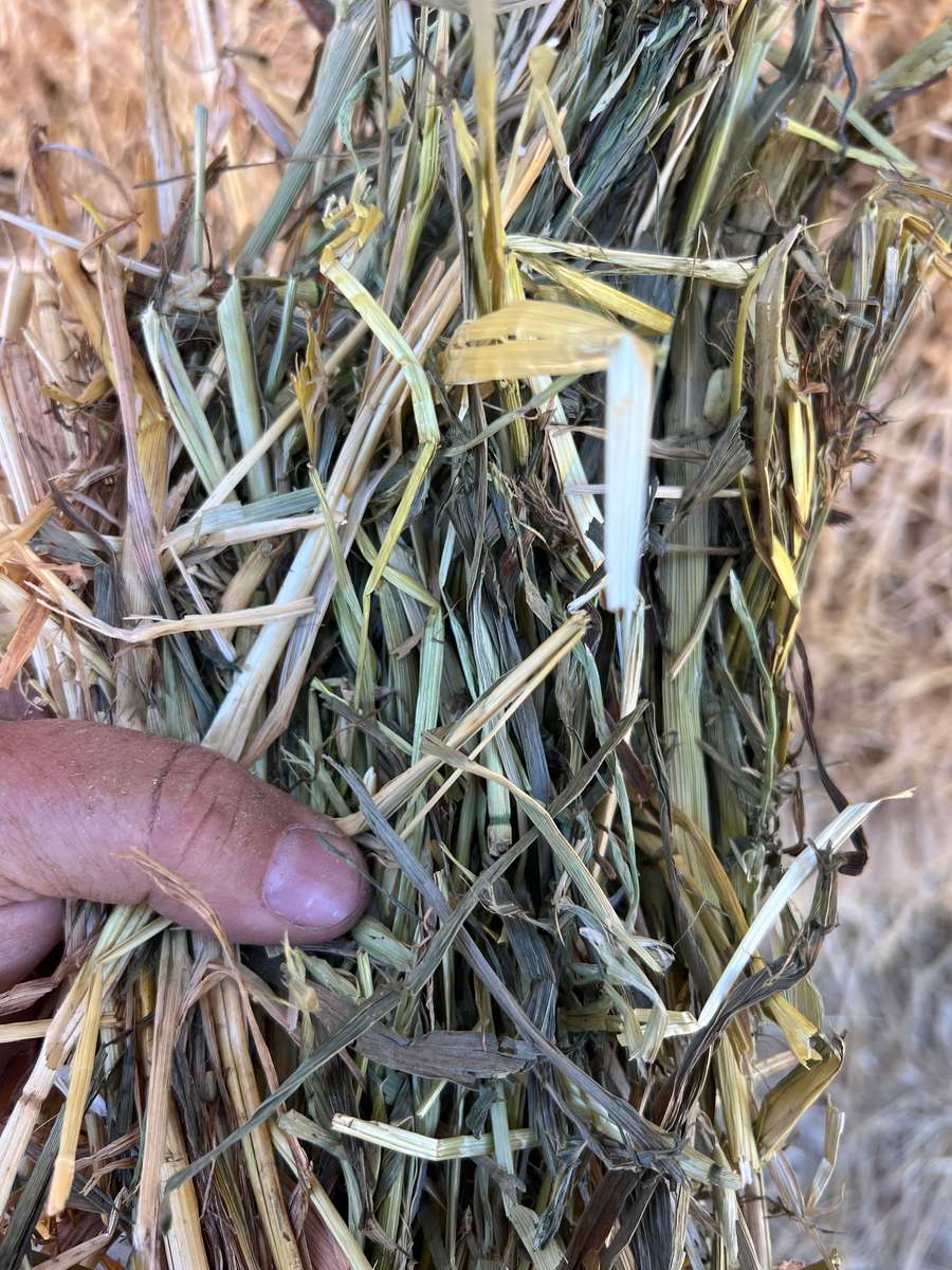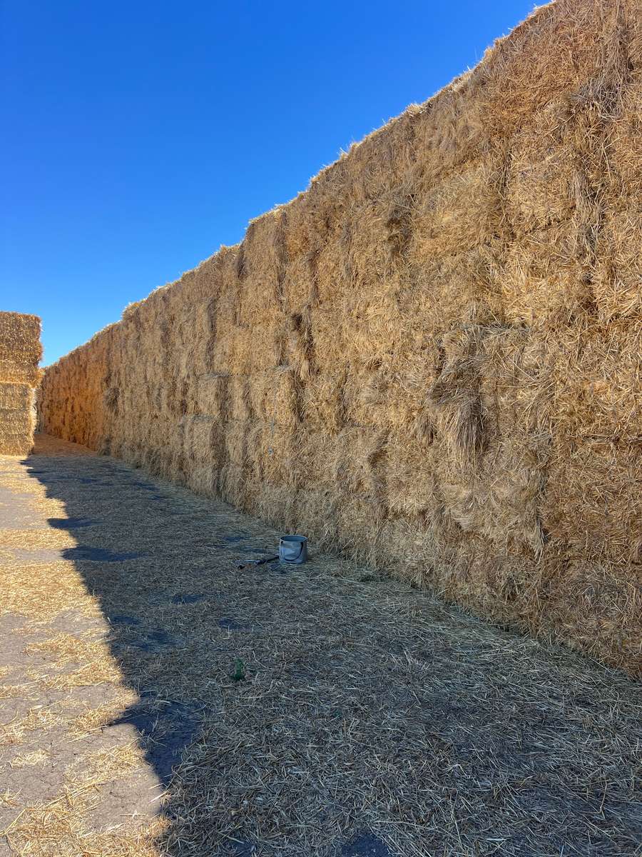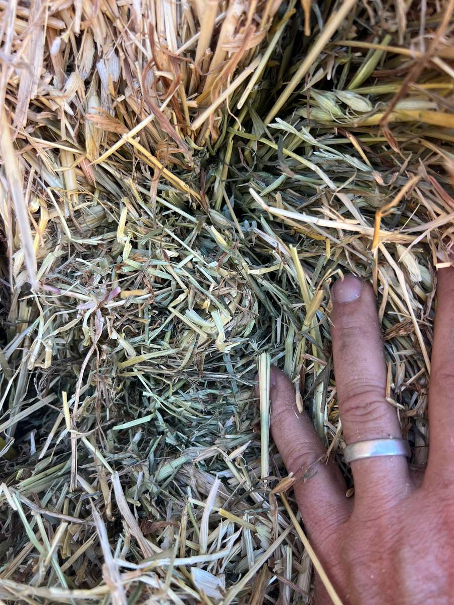 Large line of paddock stacked Oaten hay, considering the season presents exceptionally well with good colour and aroma. Treat with hay king inoculant at baling.