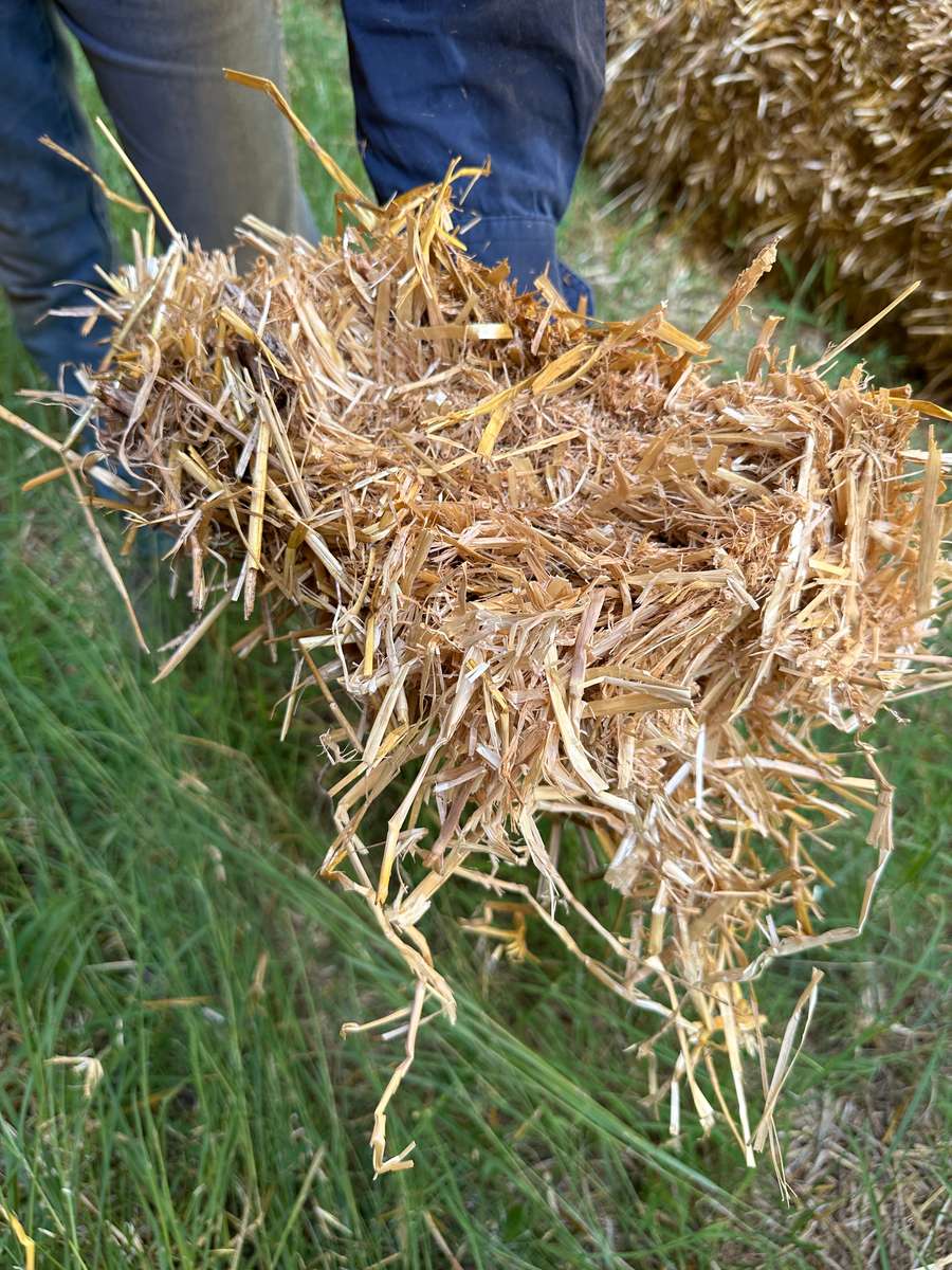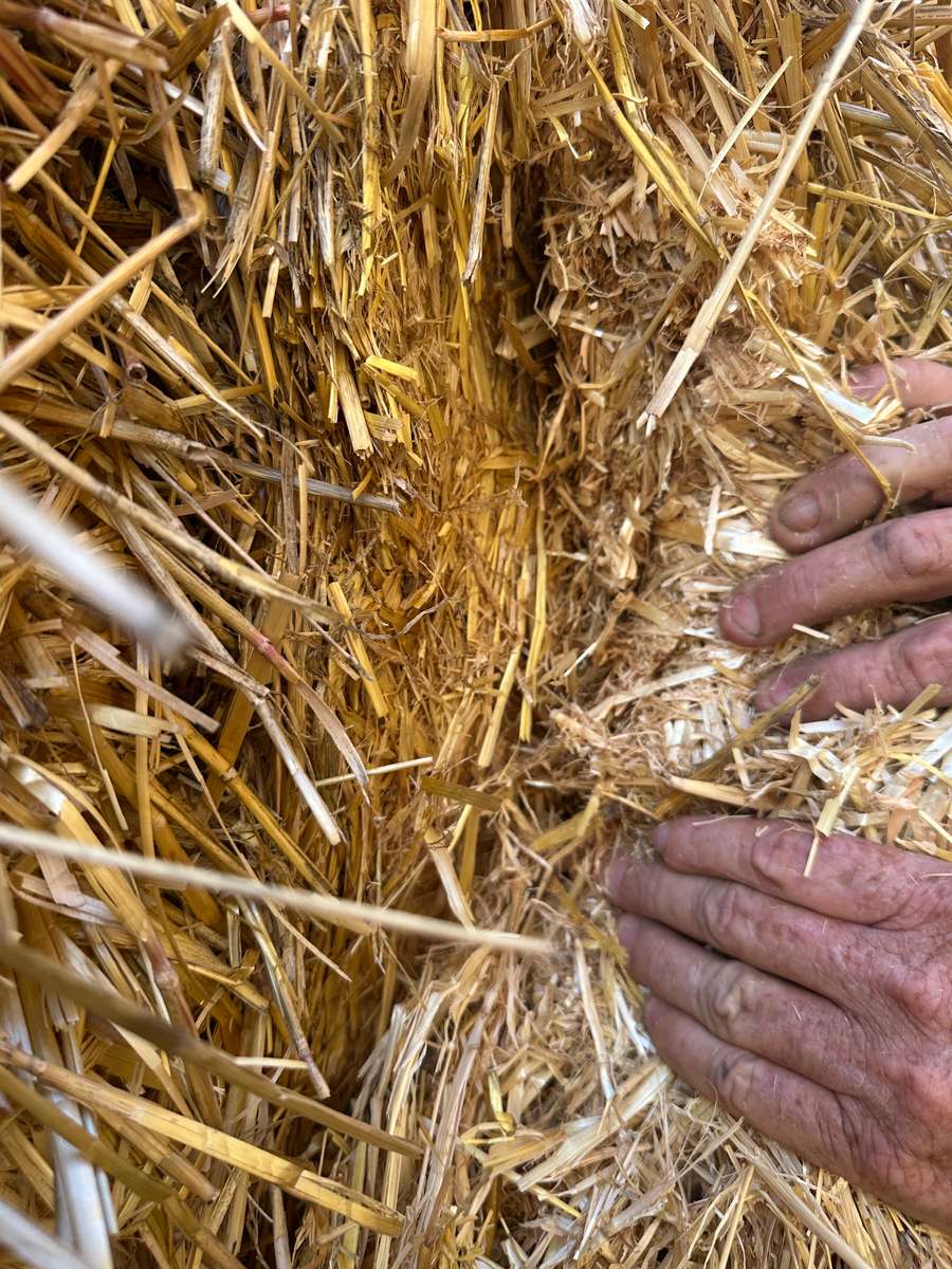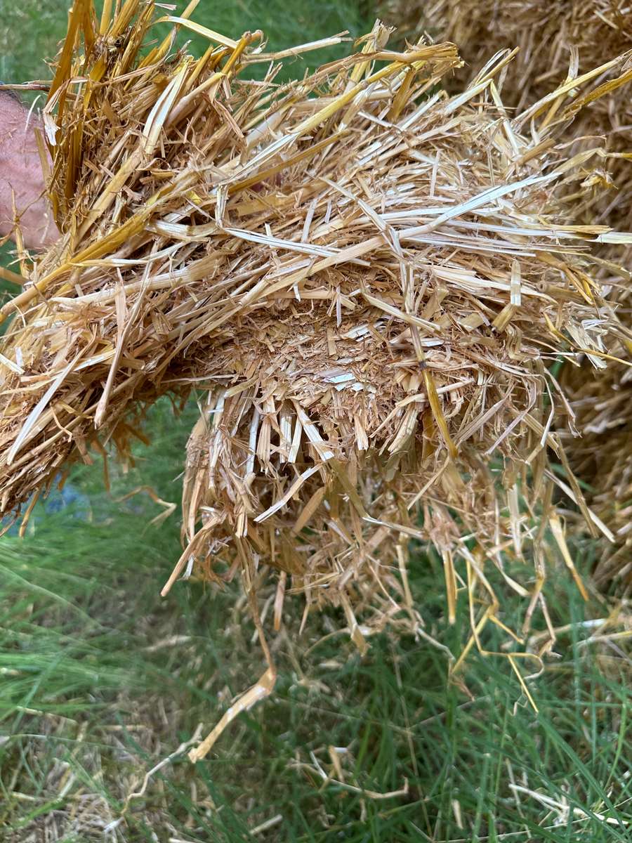 Barley straw baled with 15mm of rain in paddock before stacking. Mixed presentation. Musty smell to some bales.