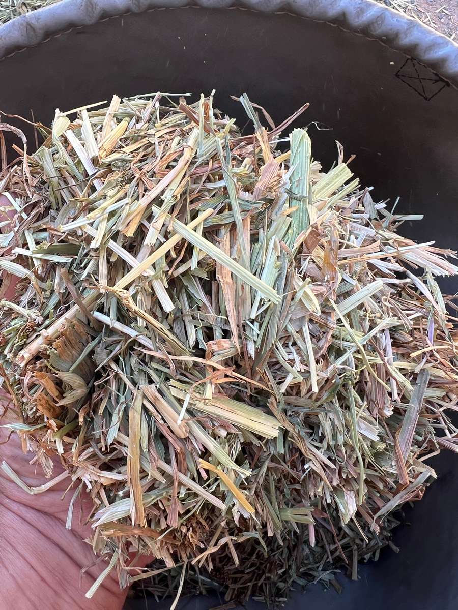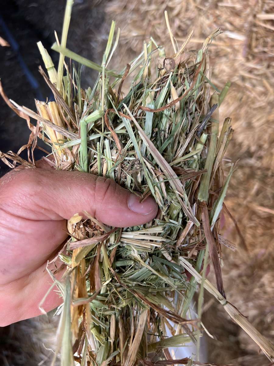 Shedded line of Oaten hay with high percentage of ryegrass through some bales. Some colour and aroma.