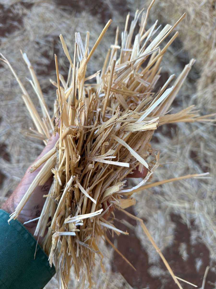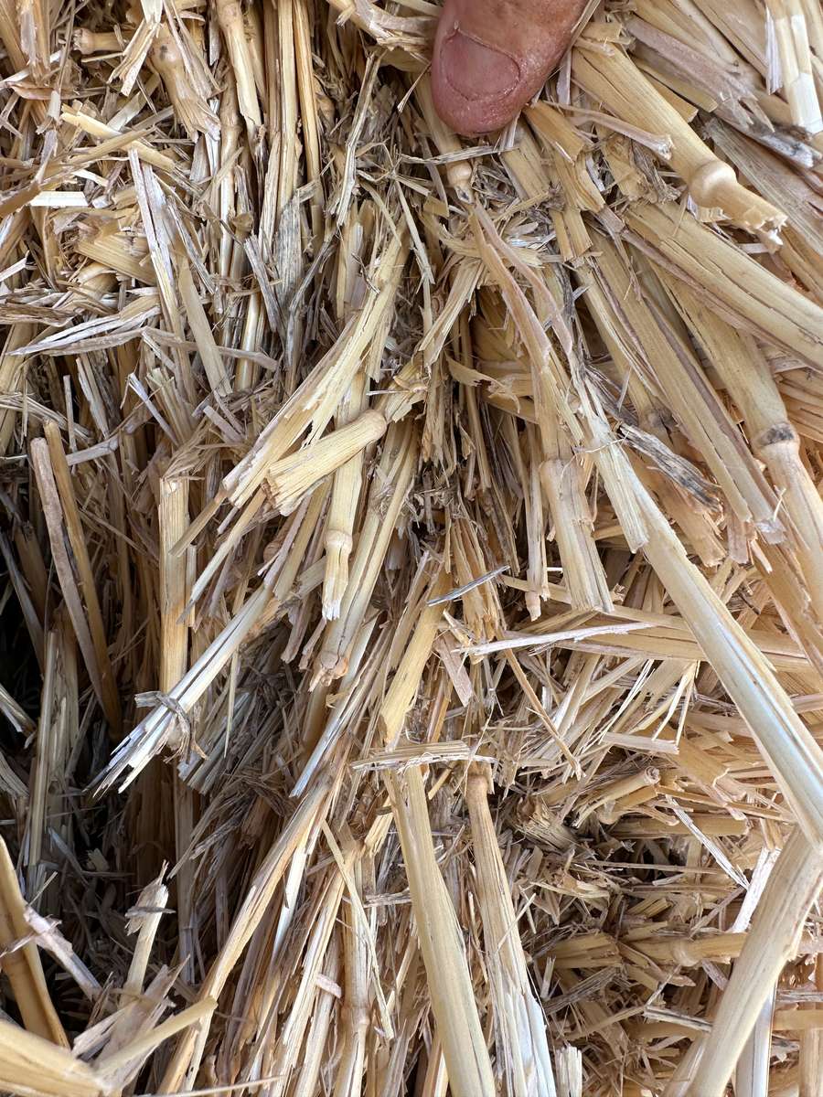 Nice line of windrowed wheat straw. Good integrity and colour. Stacked neatly in paddock