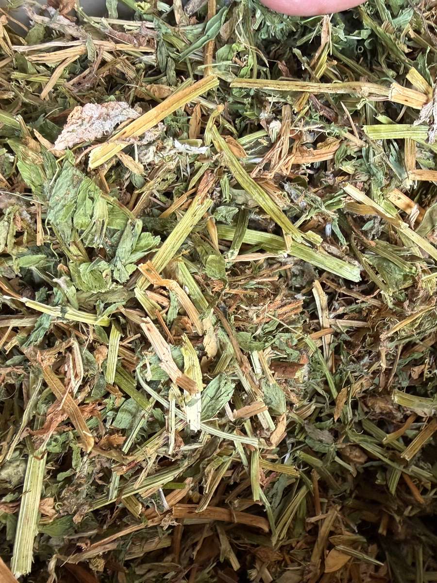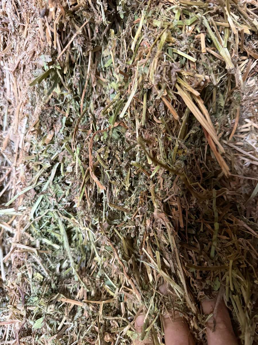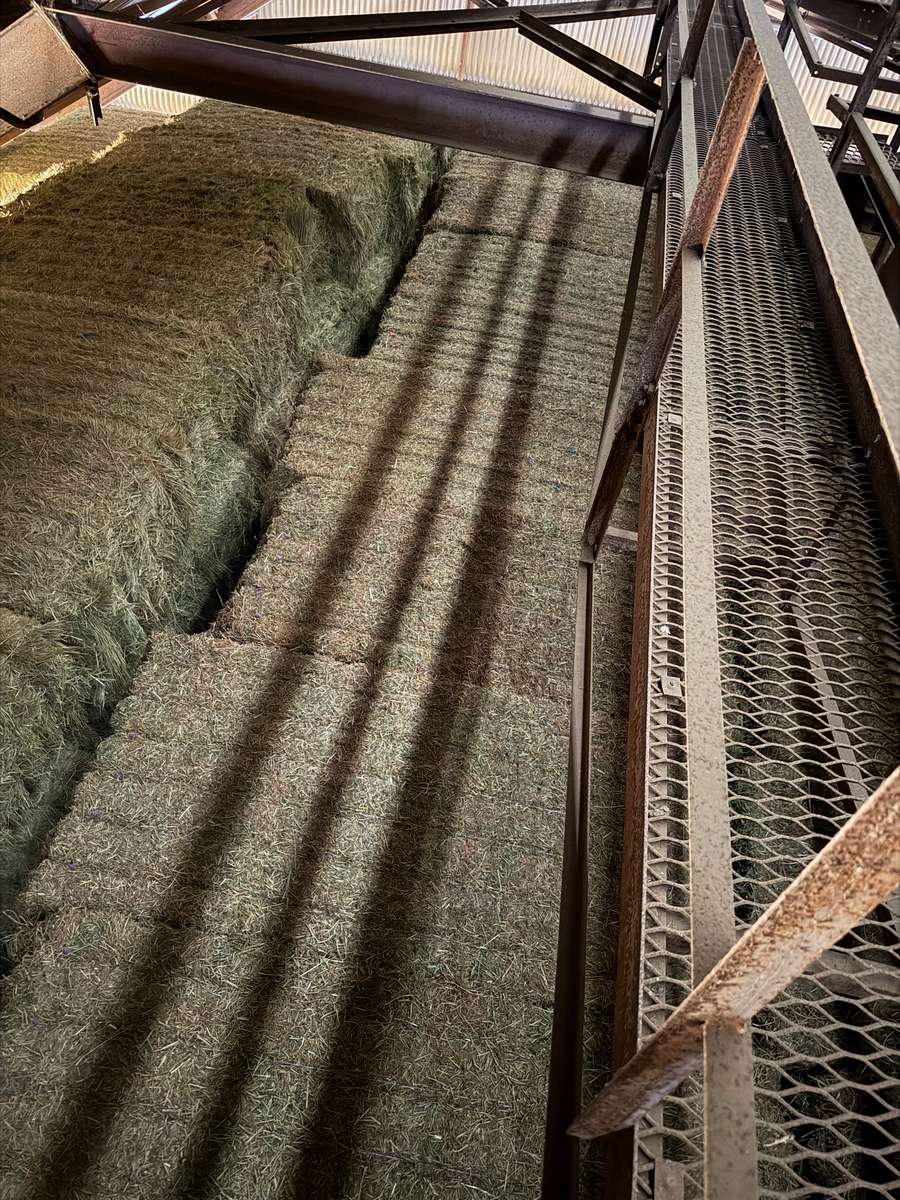 Very nice line of vetch. Good colour, plenty of leaf. Very limited access to bales. Stacked in old grain shed.