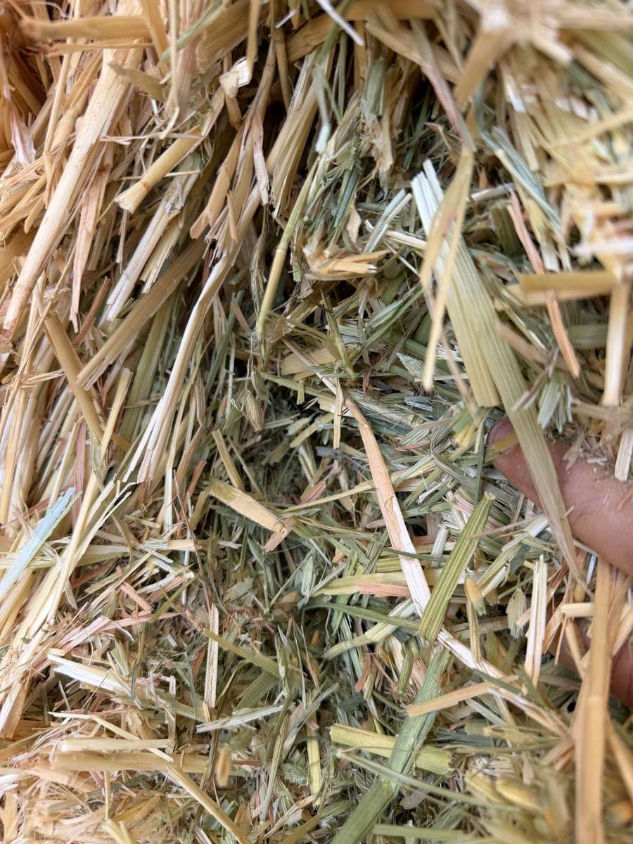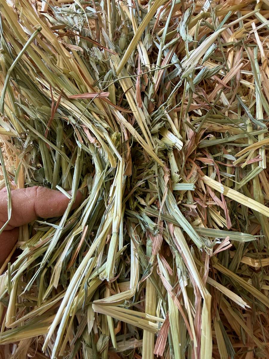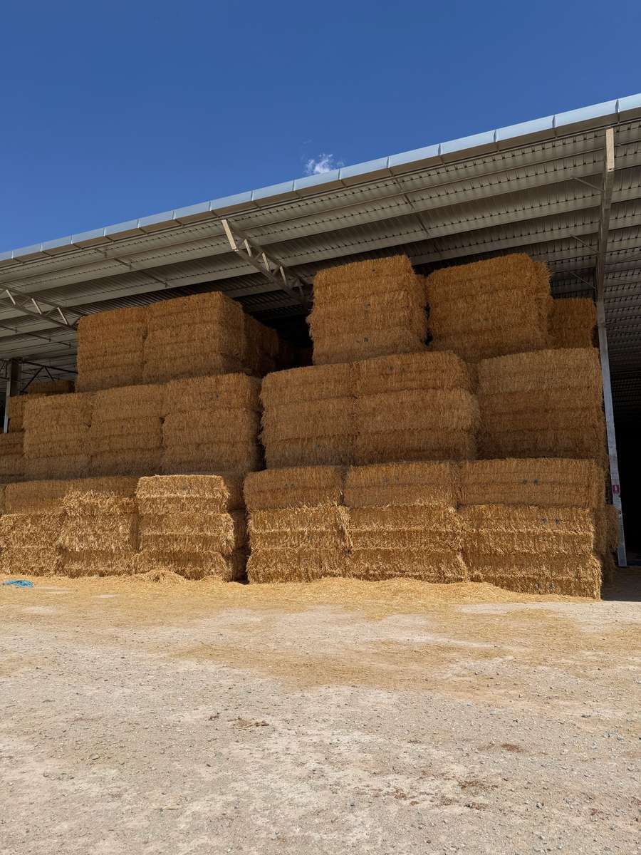 Nice batch of Oaten hay, nice colour well stacked in shed on plastic over gravel. Stacked 9 high. Mixed 6 and 8 string bales.
