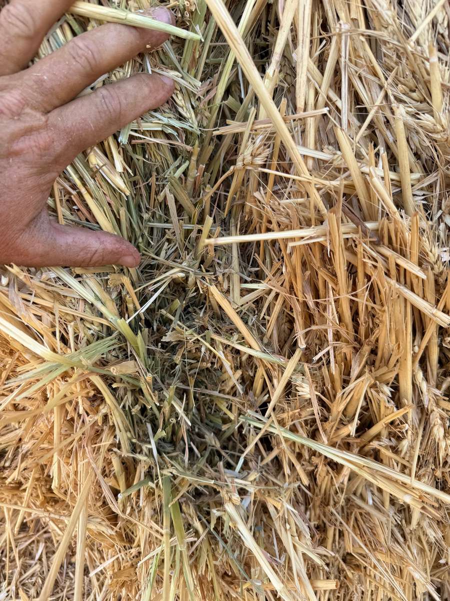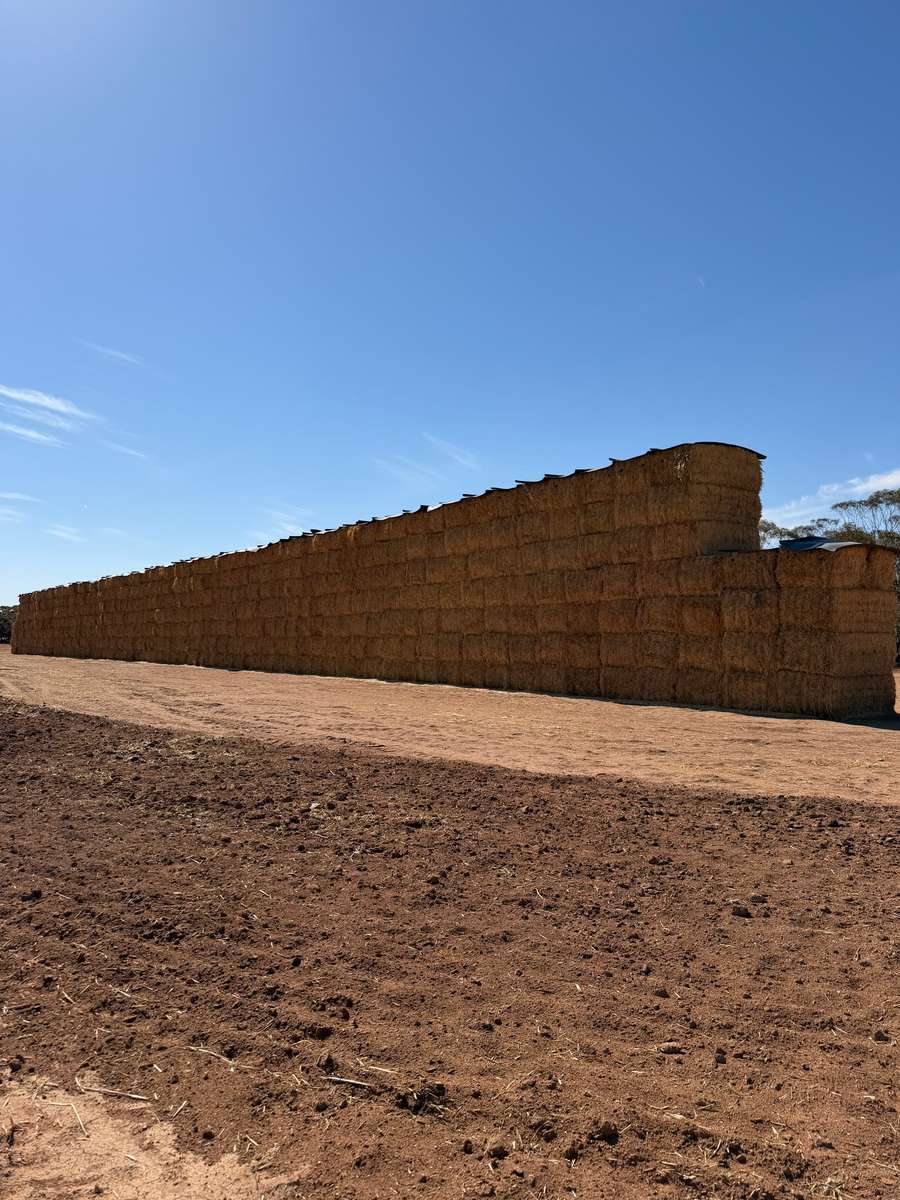 Nice batch of wheaten hay. Good colour well stacked in 3 stacks, capped. No evidence of rain on stacks. Bottom moistures are good