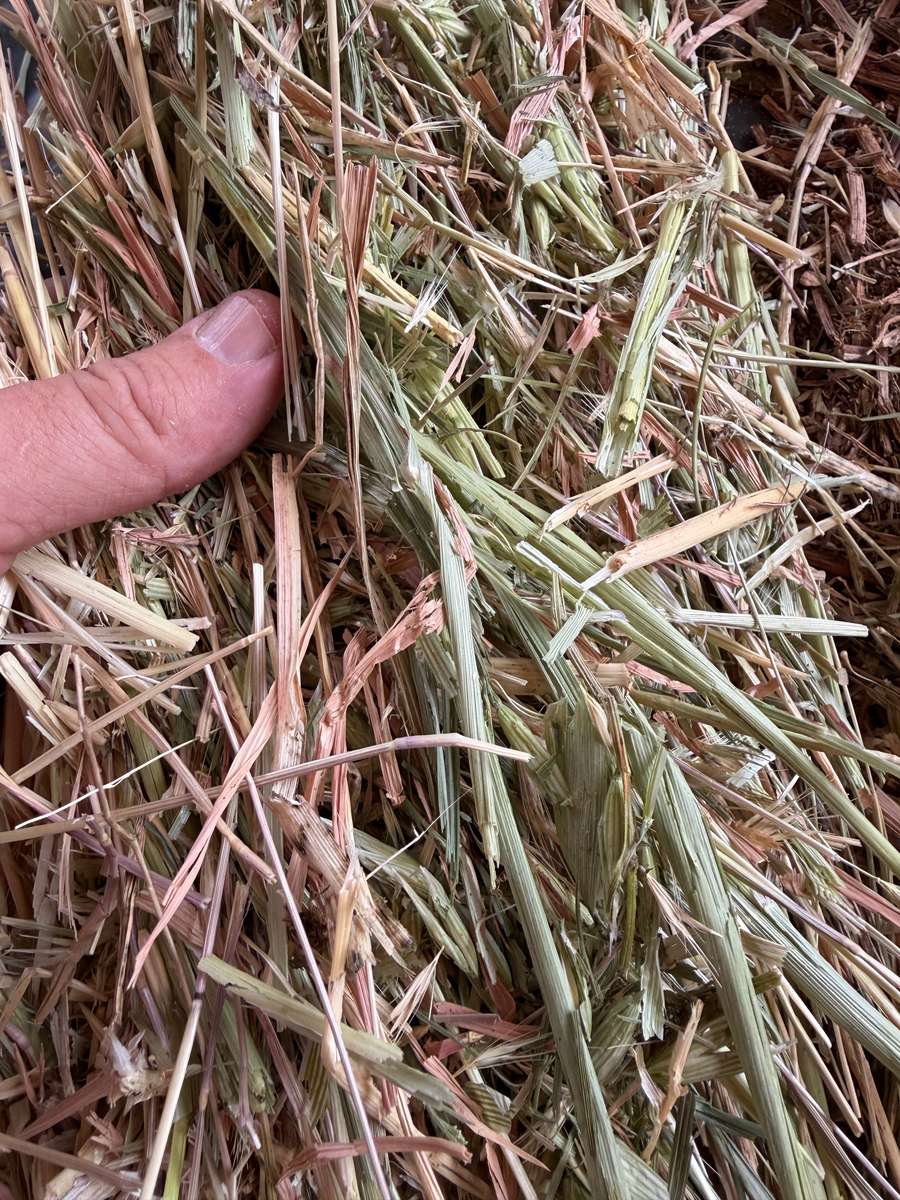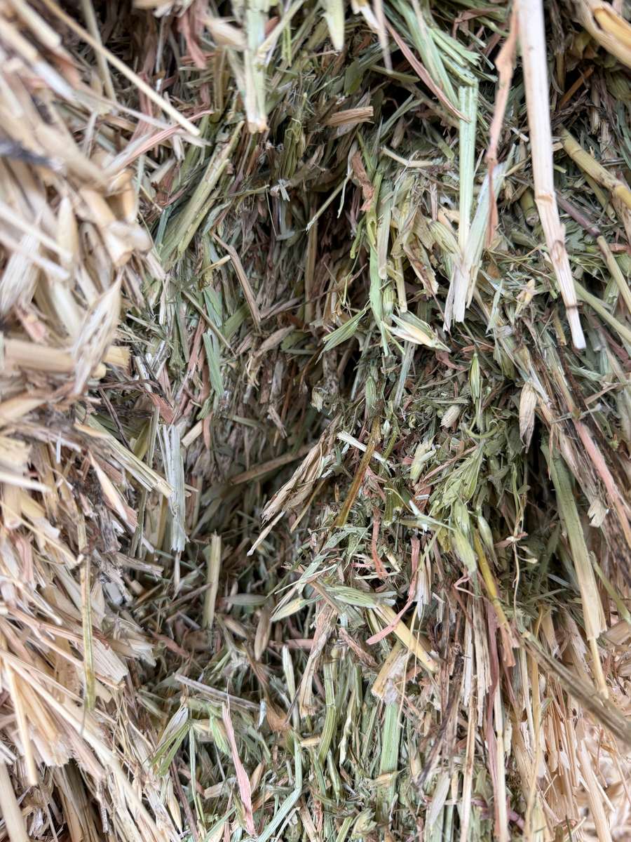 Bales have good colour and smell. There is rye grass in bales, approx 5%.