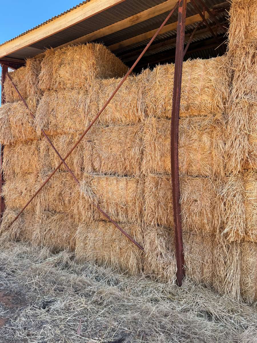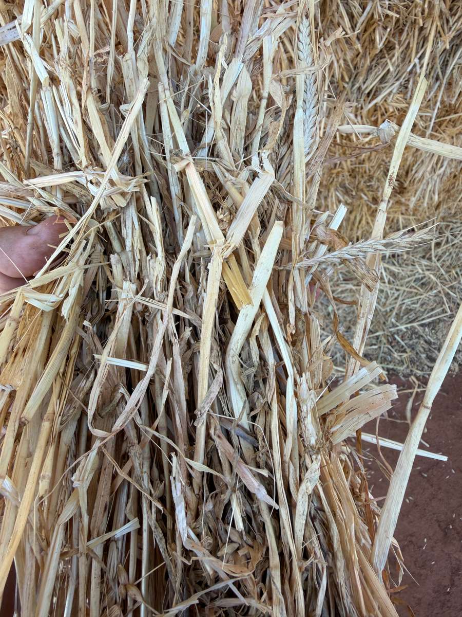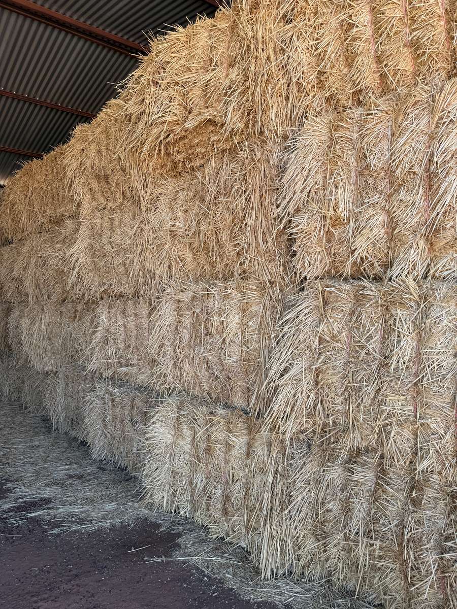 Solid bales stacked 5 high, good hay aroma. Colour is a bit light in these and seems to have some spotting on older stubble and flag leaf.