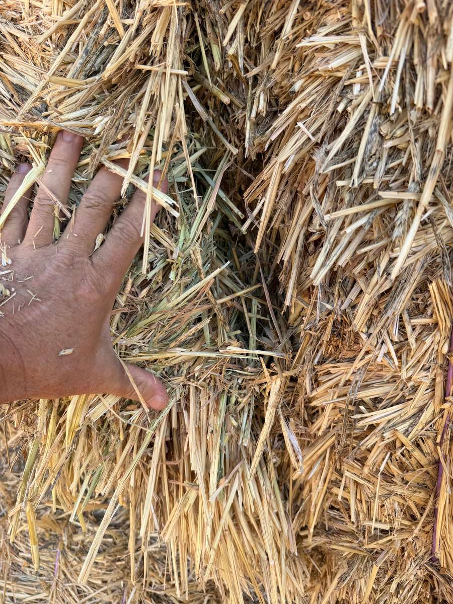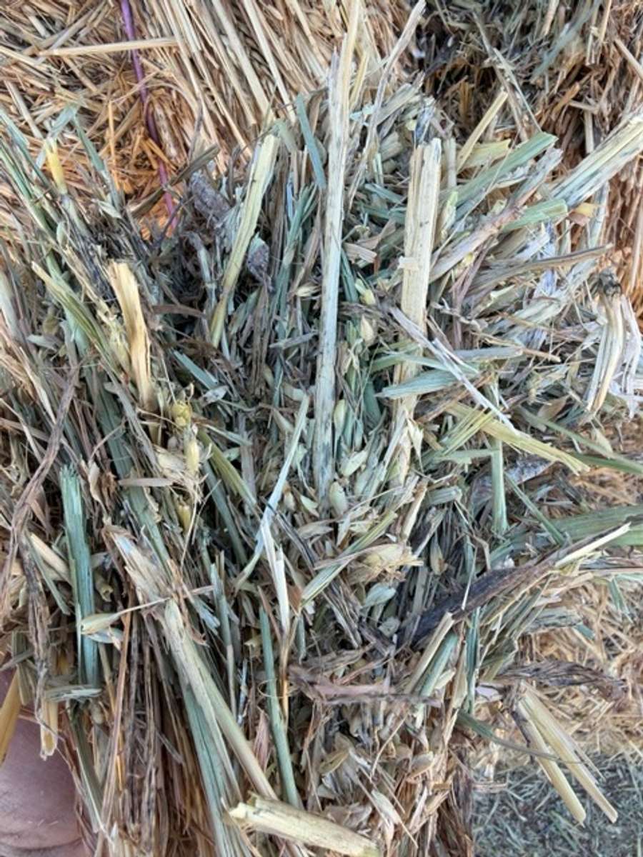 Nice bales with colour and good smell. Canola stubble may be 5%. There could be possibilities for small rocks as a part of paddock was rocky. Stacks had approximately 5 mm of rain.